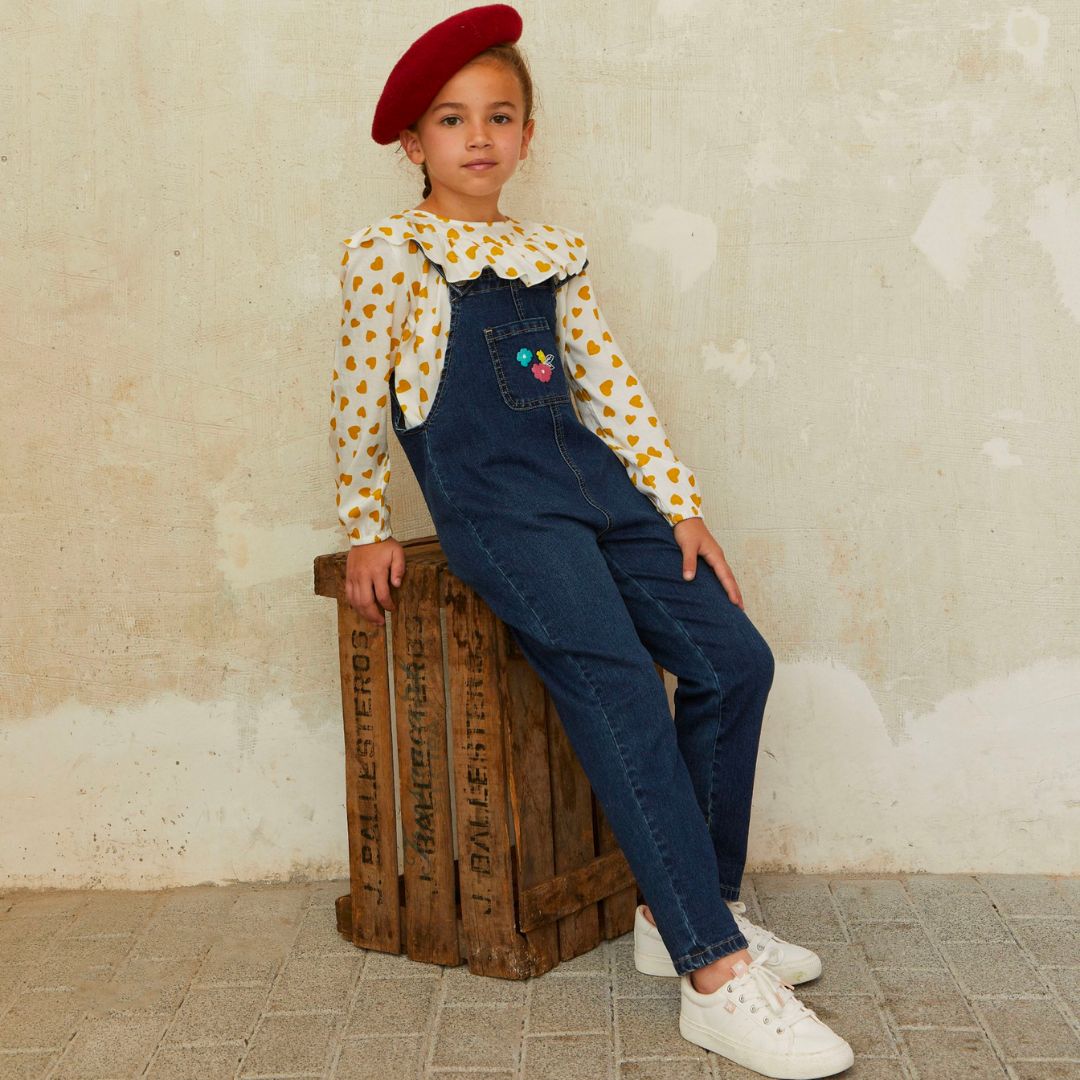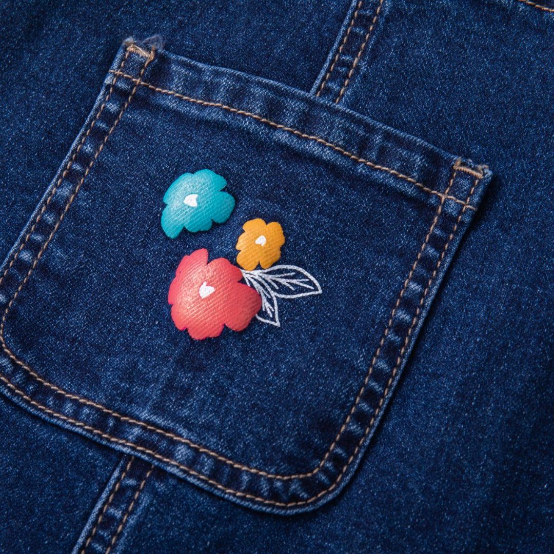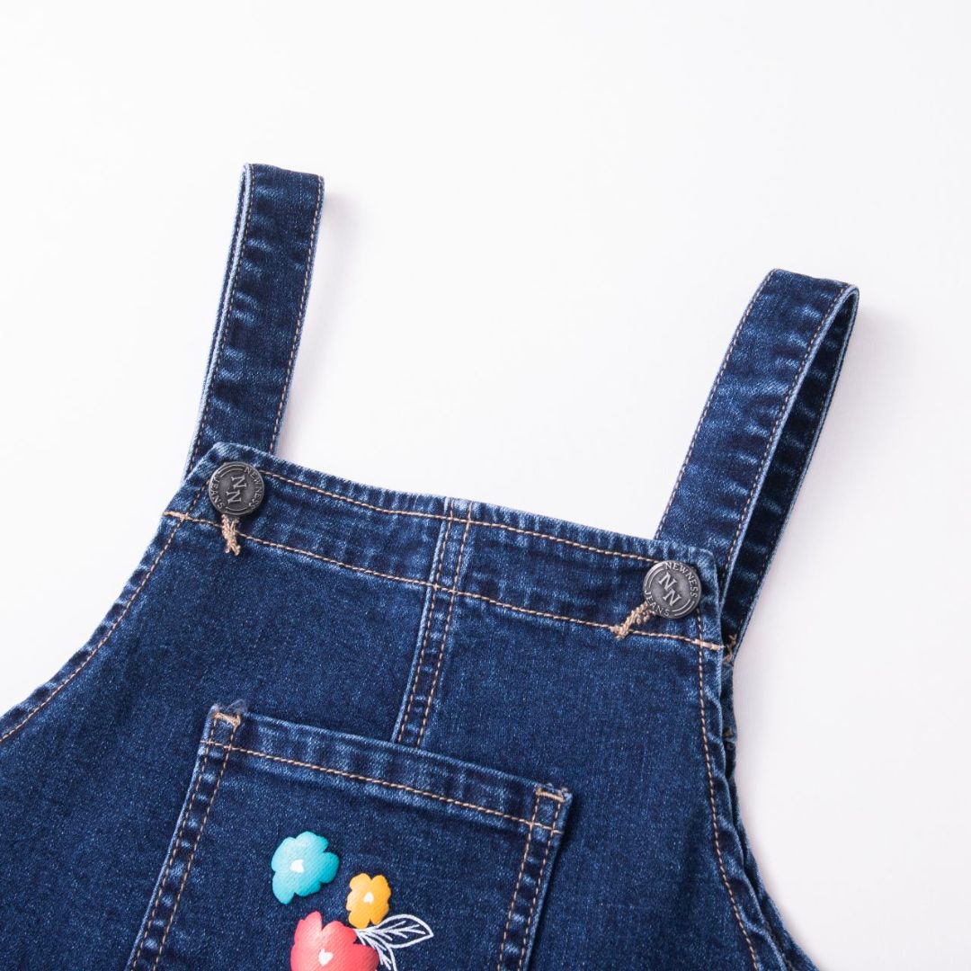 Hergestellt aus hochwertigem Jeansstoff bietet diese Latzhose nicht nur einen coolen Look, sondern auch Strapazierfähigkeit und Komfort. Die Kombination aus bedruckter Tasche und verspielten Details verleiht der Hose eine einzigartige Ästhetik.