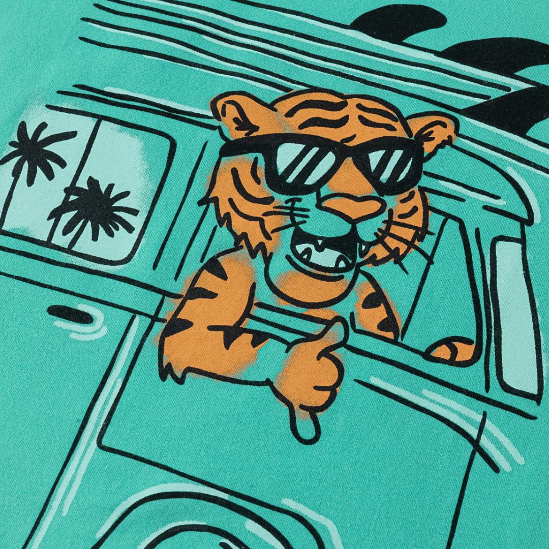 Trendy und lässig:  Das bequeme Sommershirt in trendiger Farbe für Jungs ist mit seiner lockeren Silhouette der perfekte Allrounder für den Alltag und begleitet deinen Schatz komfortabel durch die warme Zeit des Jahres. Der freundliche Look und das witzige Design mit einem coolen Tiger versprühen Gute Laune und machen das Kurzarm-Shirt zum absoluten Wohlfühlteil.