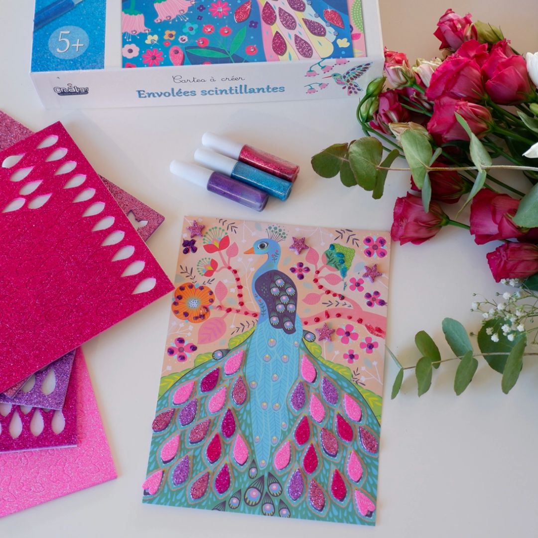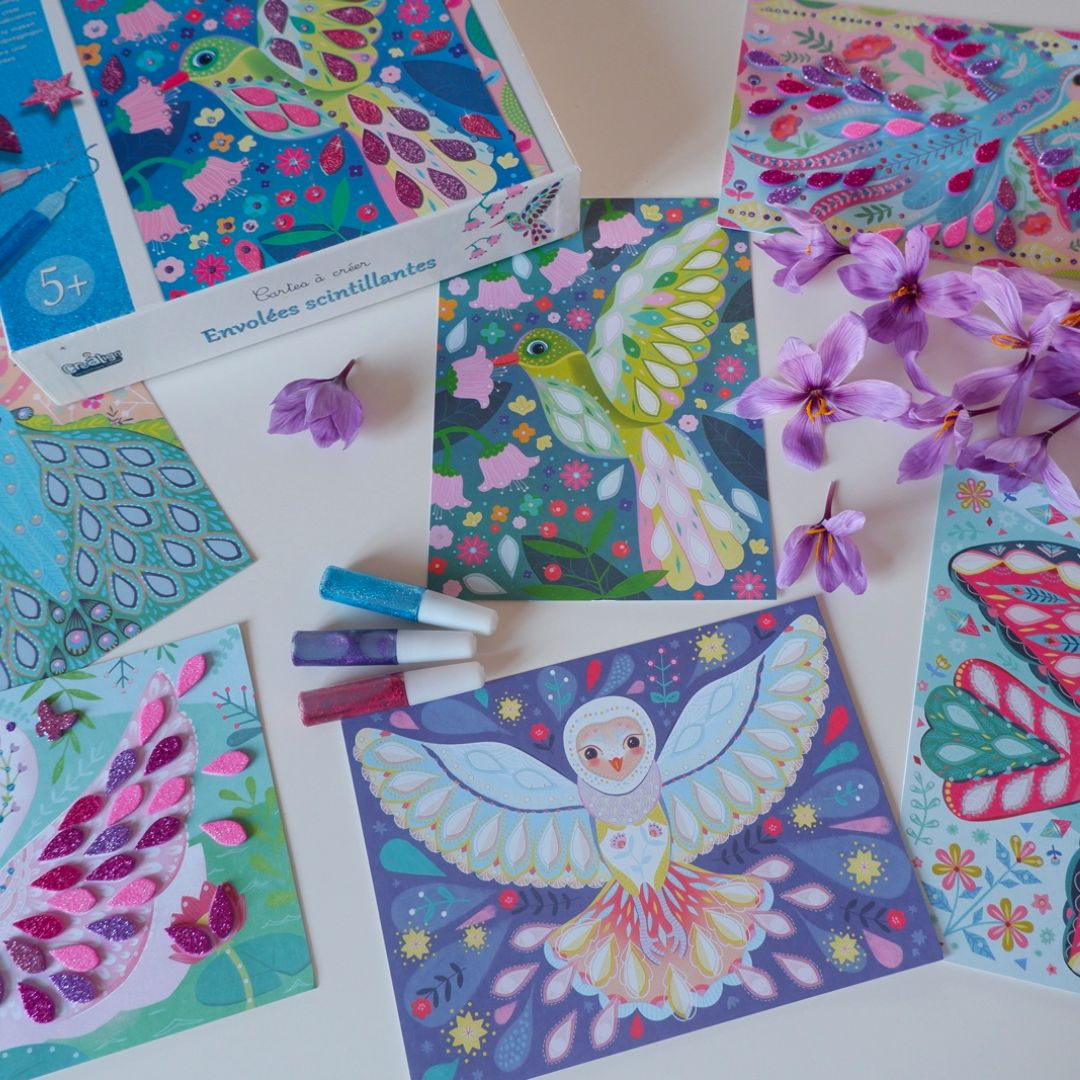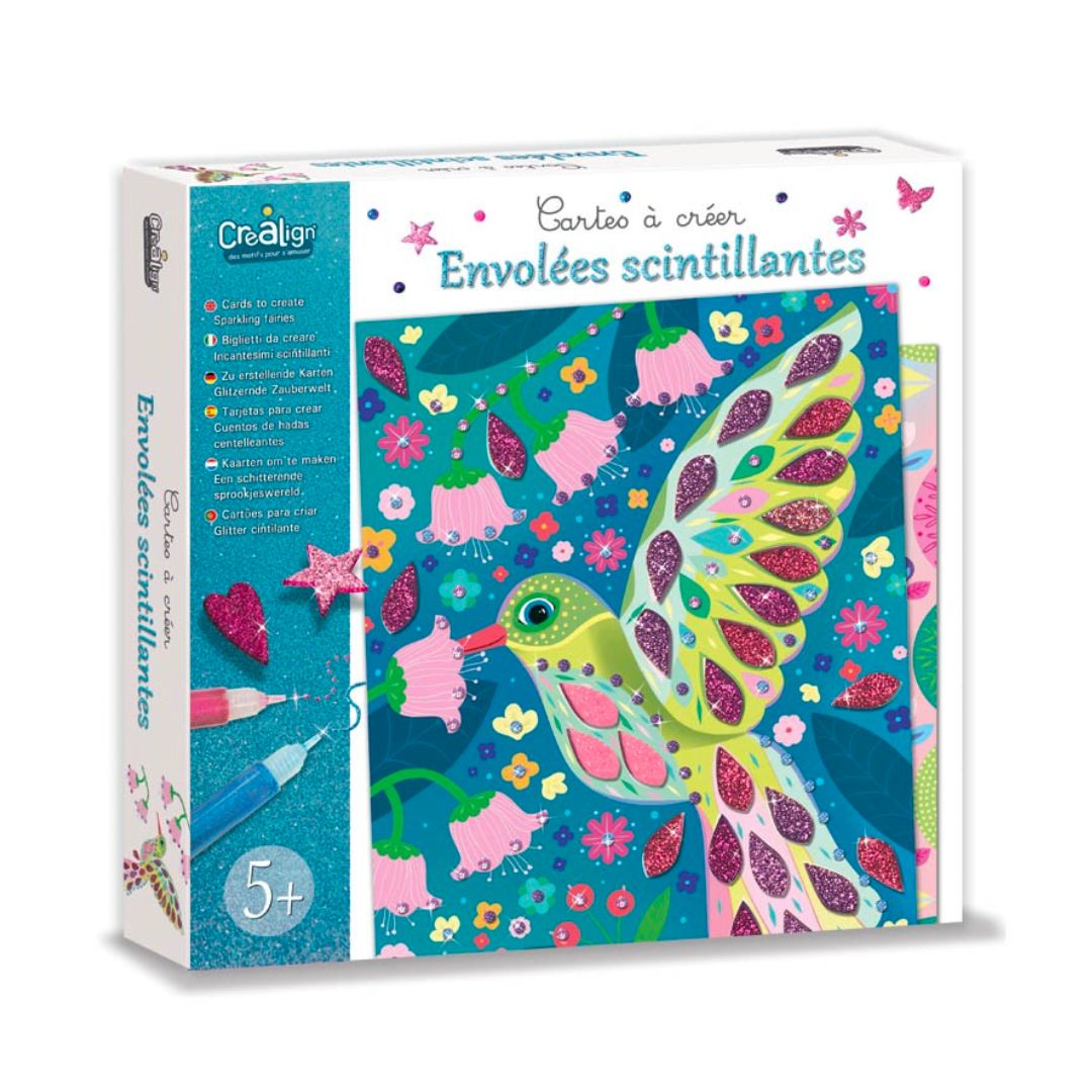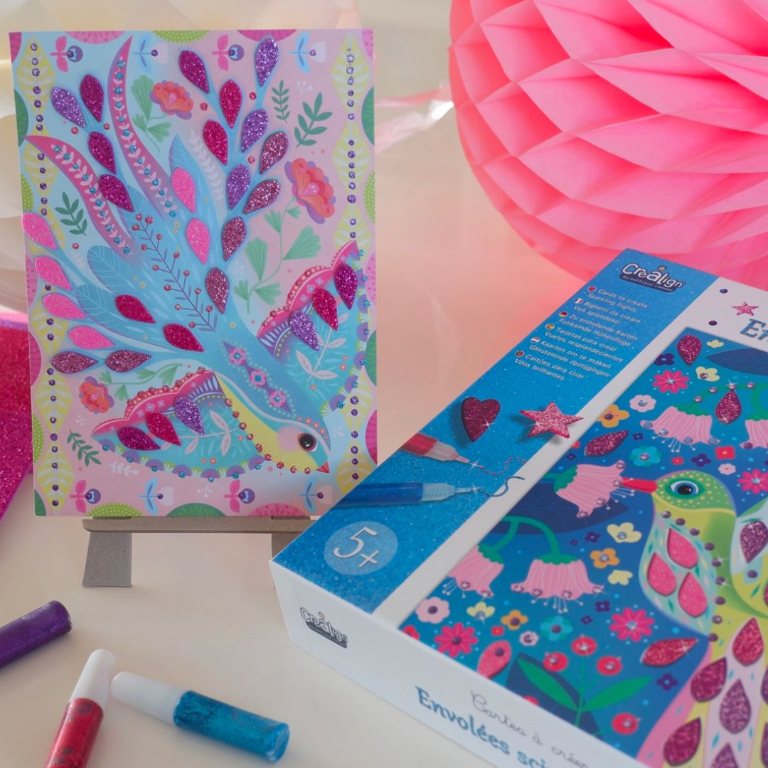 Kinder können die Karten dieses Kreativ-Sets mit Hilfe von leuchtenden Tintenstiften verschönern und funkeln lassen. Sie können sie dann anbieten oder auf der hübschen Staffelei präsentieren und dekorieren.
