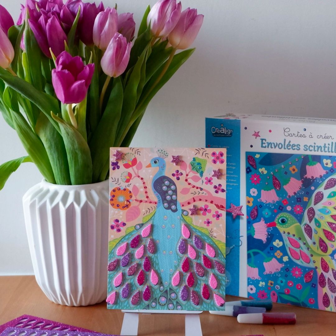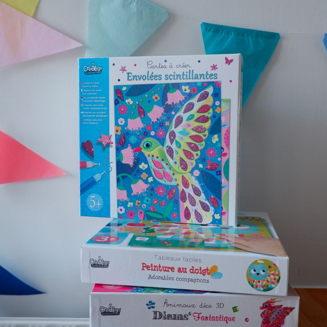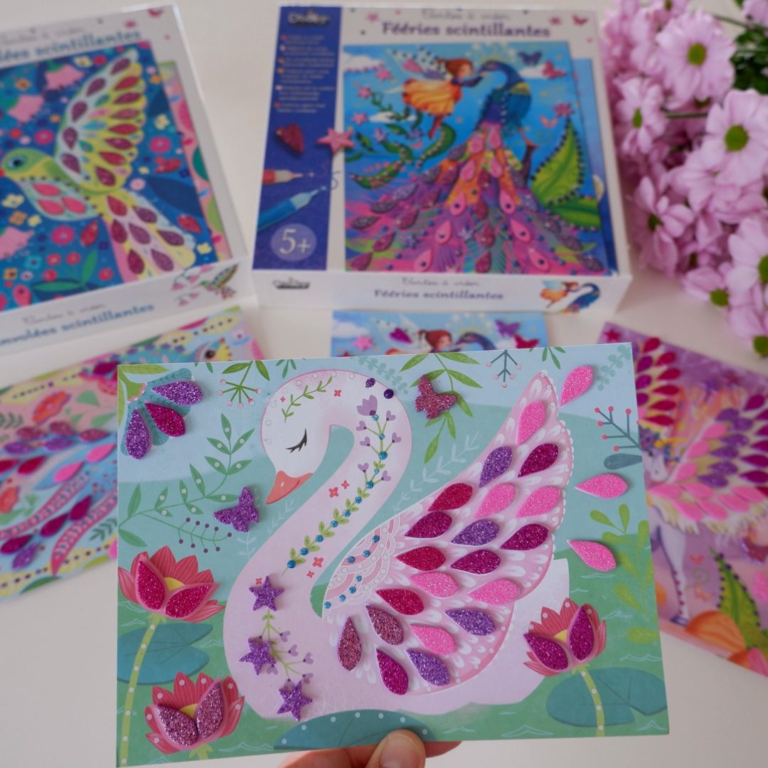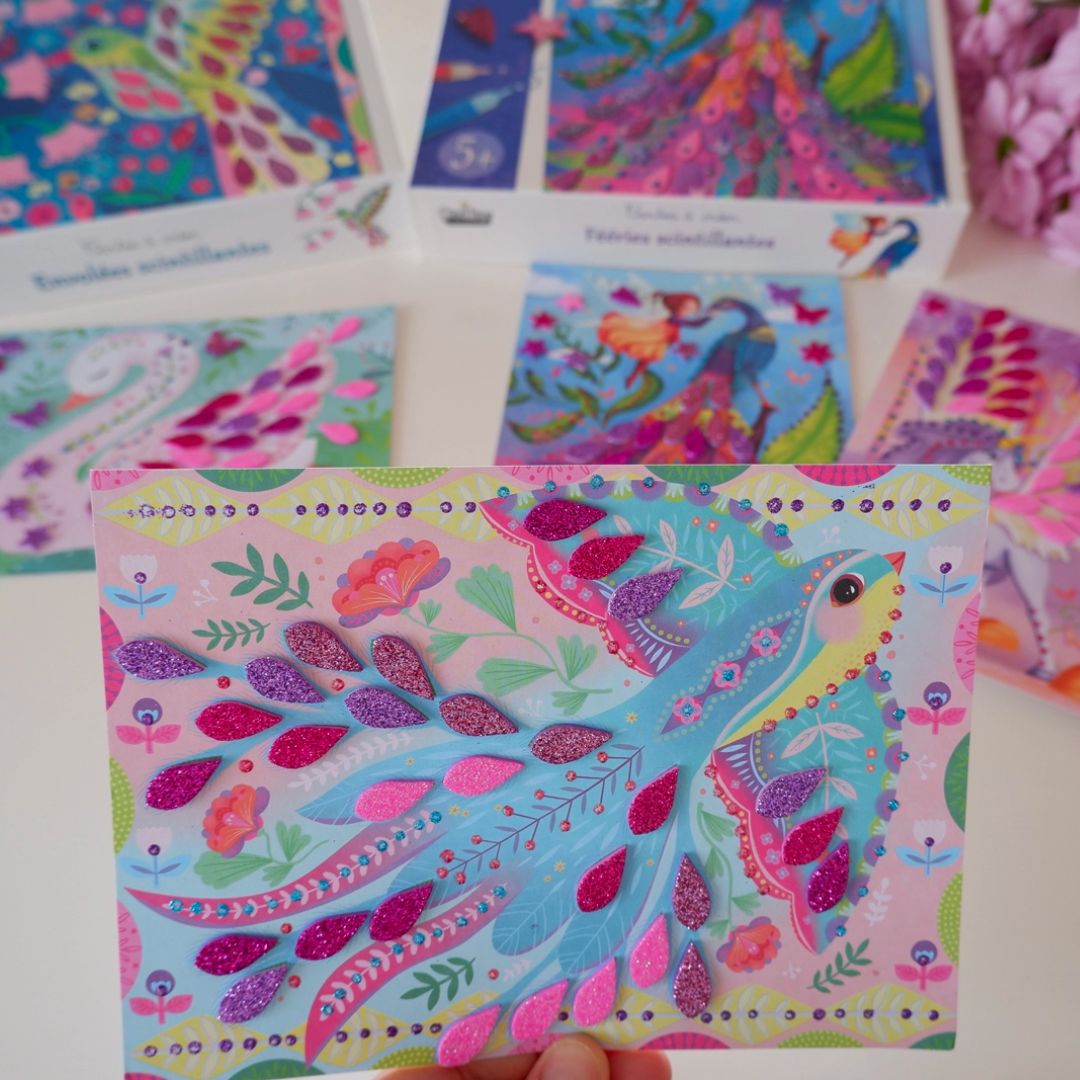 Kinder können die Karten dieses Kreativ-Sets mit Hilfe von leuchtenden Tintenstiften verschönern und funkeln lassen. Sie können sie dann anbieten oder auf der hübschen Staffelei präsentieren und dekorieren.