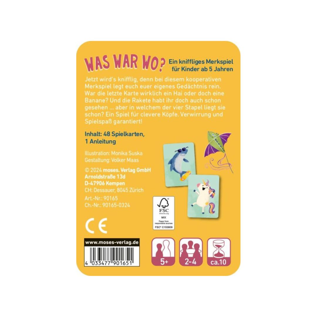 Was war wo? ist das perfekte Spiel für kleine Ratefüchse und Fans von kooperativen Spielen! Mit seinen einfachen Regeln und liebevoll gestalteten Illustrationen ist es ideal für Kinder ab 4 Jahren. Hier geht es um ein gutes Gedächtnis, eine Portion Teamarbeit und jede Menge Spielspaß. Egal, ob zu Hause, im Urlaub oder bei einer spontanen Spielrunde – dieses Merkspiel begeistert Kinder und Eltern gleichermaßen.