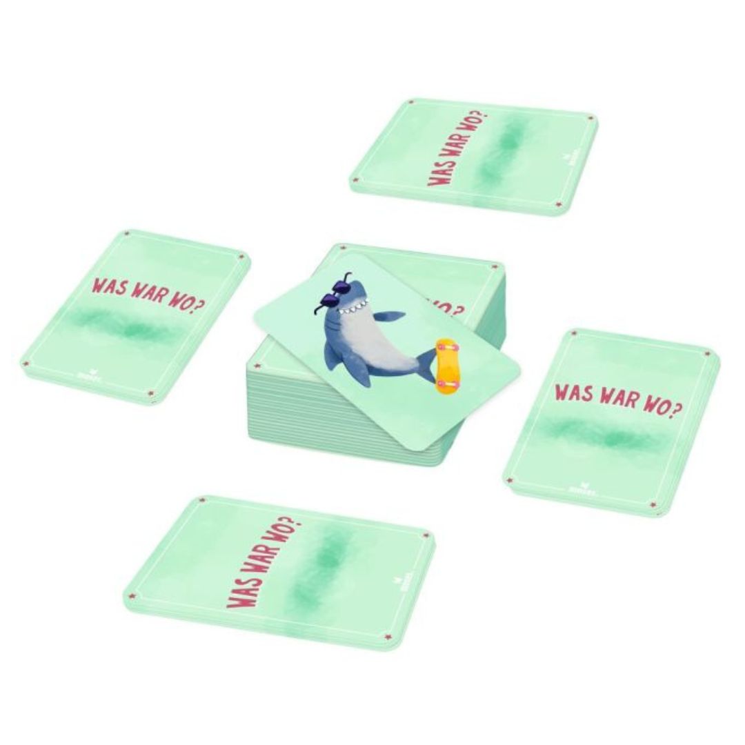 Das Besondere an „Was war wo?“ ist der kooperative Ansatz: Alle Spieler arbeiten zusammen, um die Karten auf die richtigen Stapel zu legen. Die Herausforderung dabei? Jedes Motiv darf pro Stapel nur einmal vorkommen. Das heißt, es ist Teamwork gefragt! Gemeinsam überlegt ihr, auf welchen der 4 Stapel die Karte gehört, und zeigt, wie gut ihr euch an die zuvor aufgedeckten Karten erinnert. Wer es schafft, sich gut abzusprechen und ein gutes Gedächtnis zu beweisen, hat die besten Chancen, das Spiel zu gewinnen.