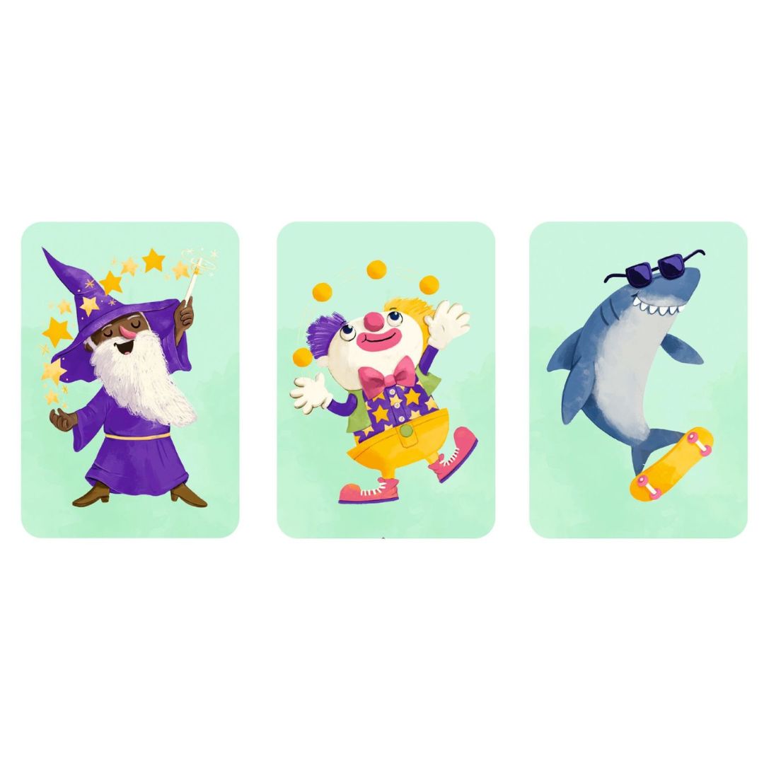 Karte aufdecken: Eine Karte wird aufgedeckt, und alle Spieler schauen sich das Motiv genau an. Ist es der Hai, das Einhorn oder vielleicht die Giraffe? Die Motive sind vielfältig und liebevoll illustriert, sodass das Spiel nicht nur die grauen Zellen fordert, sondern auch die Augen erfreut.