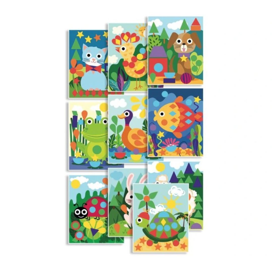 Kreative Freizeitbeschäftigung für Kinder ab 3 Jahren. Mit Hilfe von selbstklebenden Formen gestalten die Kinder 10 vorgedruckte Bilder mit fröhlichen Tiermotiven. Das ist aber gar nicht so einfach, denn man muss wissen, welcher Aufkleber wohin gehört. Dieses Aufkleber-Set ist ein tolles Geschenk, das Kindern hilft, ihre motorischen Fähigkeiten und ihr räumliches Vorstellungsvermögen zu entwickeln. Auch zum Üben des Erkennens von Formen und Farben geeignet.
