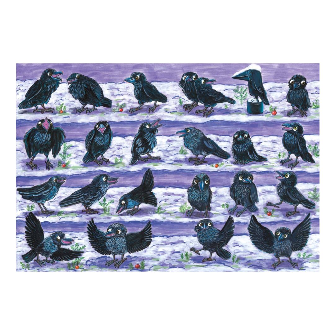 Aber der kleine Rabe bläst kein Trübsal, im Gegenteil er beginnt einfach allein zu singen. Schon bald finden auch andere Raben Gefallen am Chorgesang...