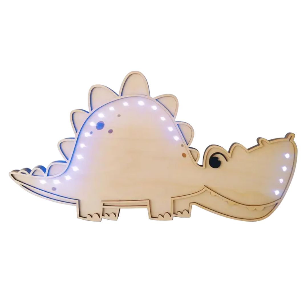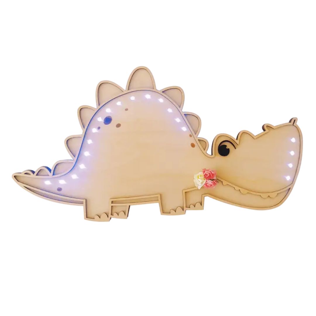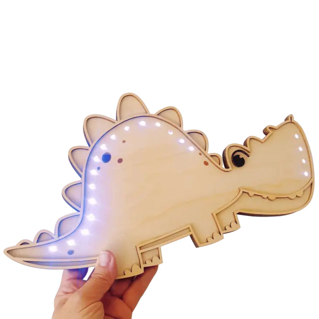 Willkommen in unserer magischen Welt der Kinderlampen! Unser niedlicher Dino steht bereit, um das Kinderzimmer zu erhellen und die Fantasie zum Leuchten zu bringen. Diese Kinderlampe aus Holz ist einfach zum Aufhängen an der Wand oder perfekt für den Nachttisch geeignet. Mit den batteriebetriebenen LED-Leuchten ist sie sowohl als normale Beleuchtung als auch als beruhigendes Nachtlicht für Deinen kleinen Träumer ideal. Aber diese Lampe ist mehr als nur ein Lichtspender - sie ist ein wahrer Freund für Deine Kinder. Unser liebenswerter Dino wird zum Hüter ihrer Träume und sorgt für eine gemütliche und sichere Atmosphäre im Kinderzimmer kleiner Süßlinge. Mit seinem bezaubernden Dinosaurier-Design ohne Kabel wird er zum Blickfang und lässt Kinderaugen strahlen.