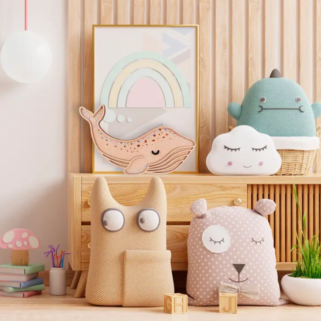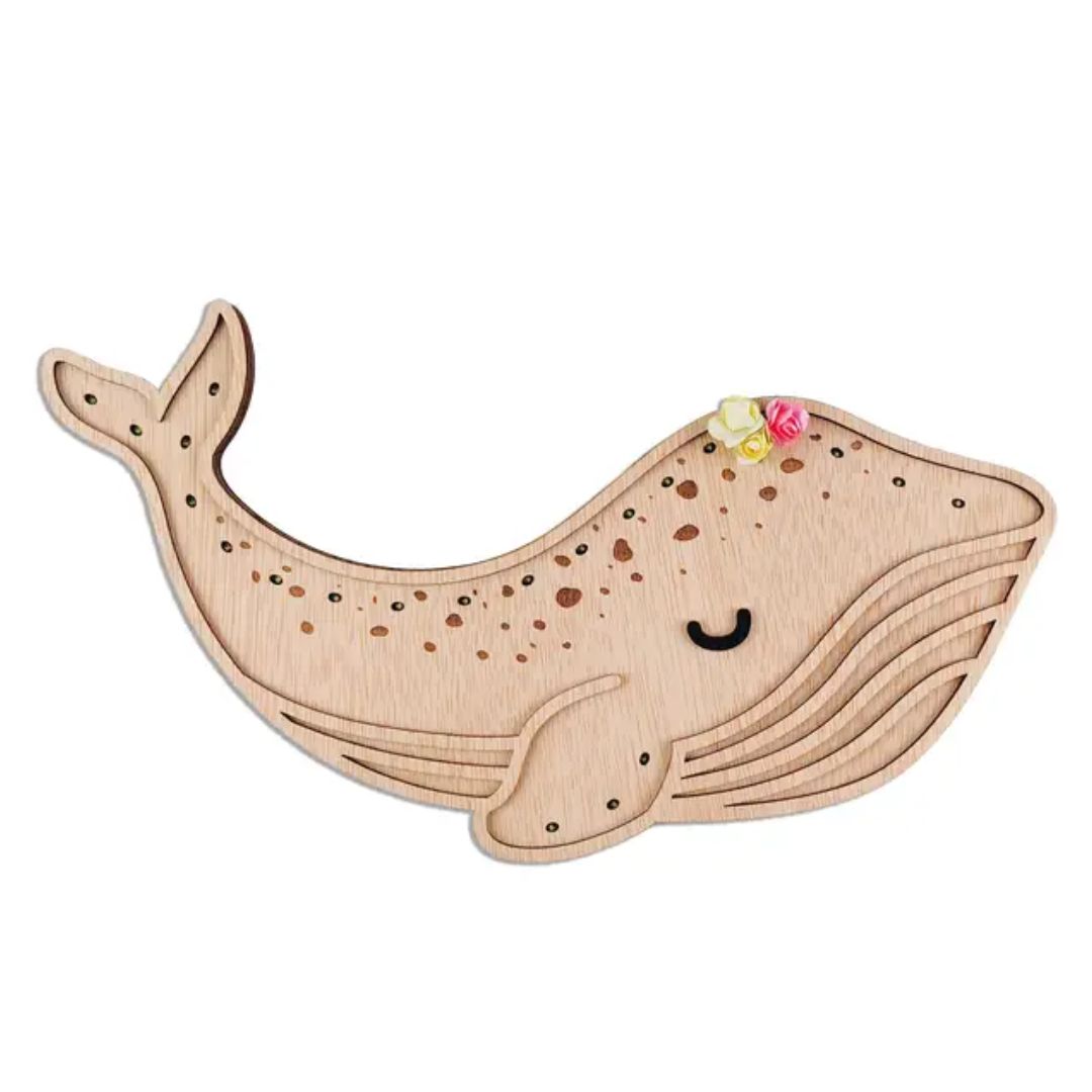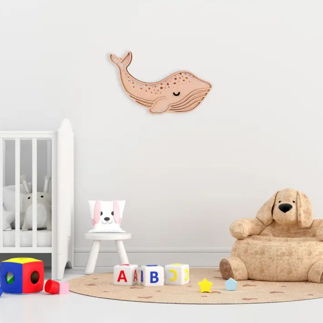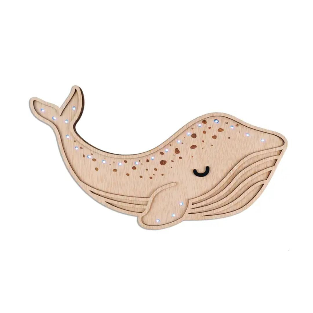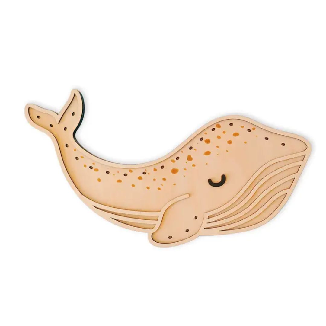 Unser niedlicher Wal steht bereit, um das Kinderzimmer in ein sanftes Licht zu tauchen und die Fantasie zum Strahlen zu bringen. Diese Kinderlampe aus Holz ist perfekt zum Aufhängen an der Wand oder für den Nachttisch geeignet. Mit den batteriebetriebenen LED-Leuchten sorgt sie sowohl für eine angenehme Beleuchtung als auch als beruhigendes Nachtlicht für kleine Träumer.