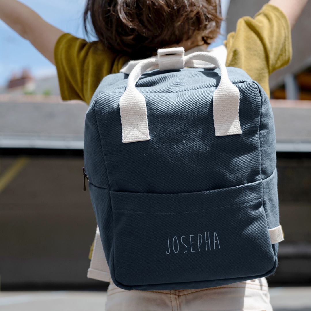 Cooler blauer Kinderrucksack mit Personalisierung für Kinder von 3 bis 7 Jahren