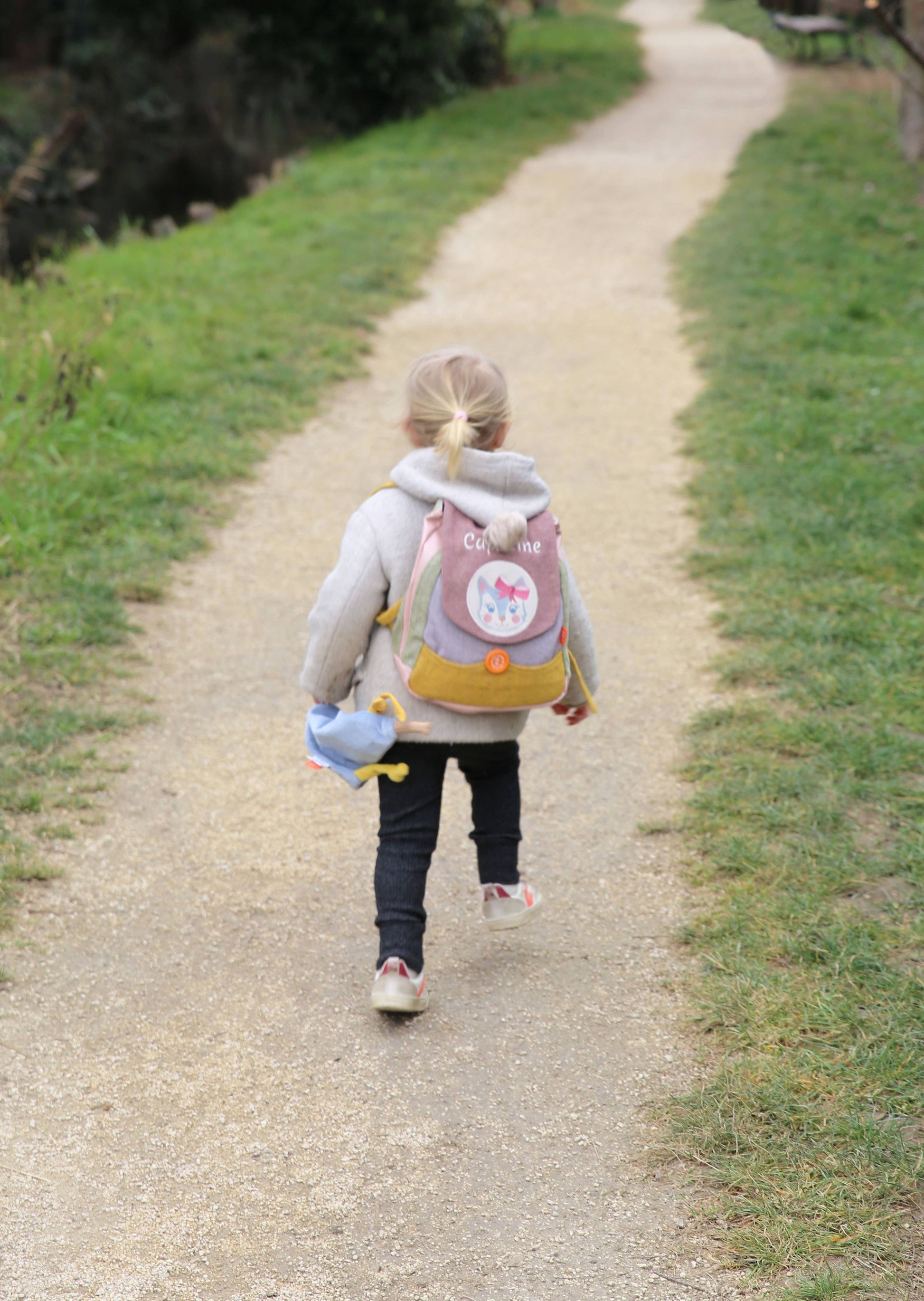 Unsere Rucksäcke für Kinder sind mit bezaubernden poetischen Szenen verziert: Kinderrucksack Frau Katze