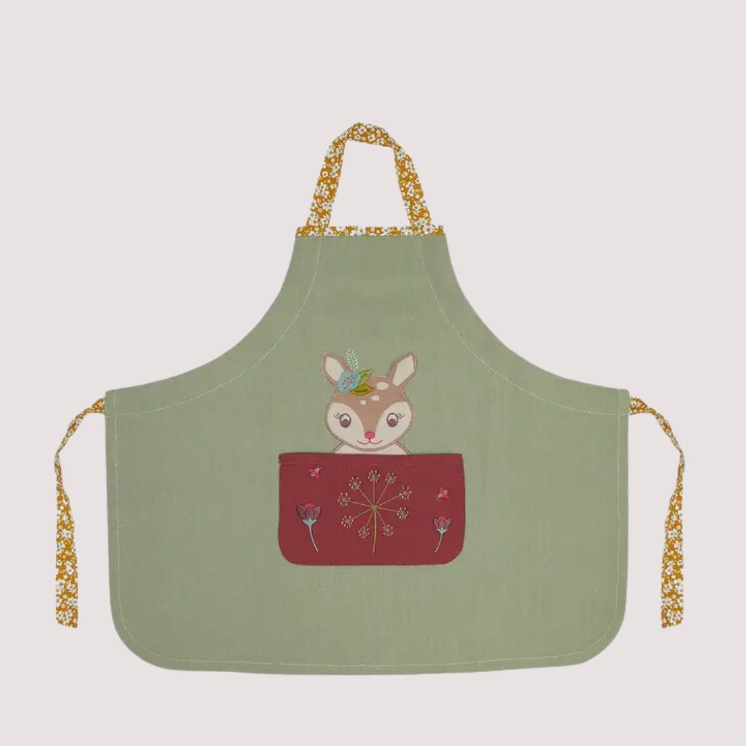 Kinderschürze Rehkitz mintgrün personalisierbar