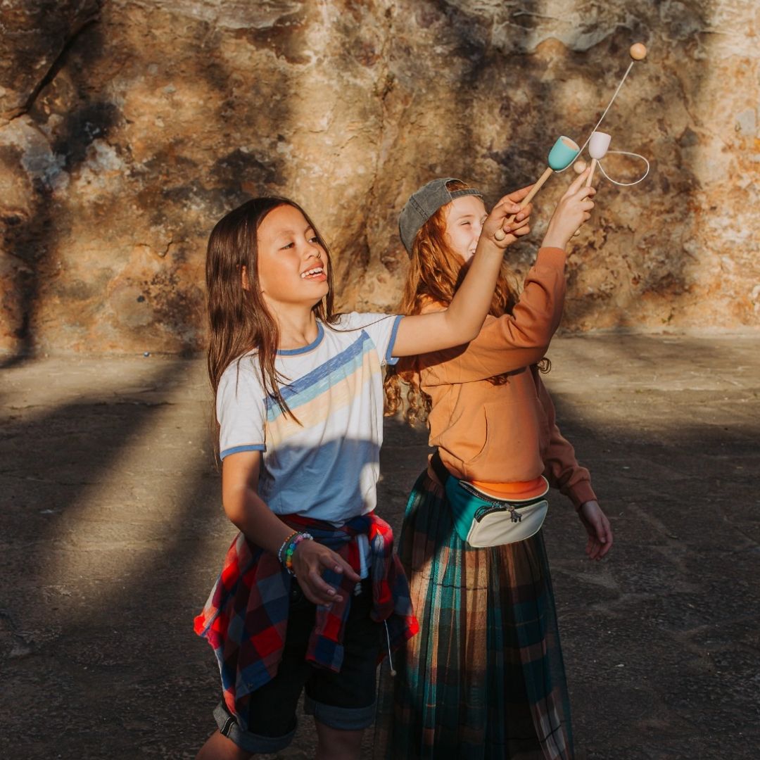 In diesem traditionellen Spiel kannst du deine besten Tricks und Bewegungen üben. Zieh das Oberteil mit der Schnur zusammen und wirf es mit Energie! Es klingt einfach, ist es aber nicht. Alter: 6-12 Jahre. Nicht für Kinder unter 3 Jahren geeignet Entworfen und hergestellt von handcrafted in Barcelona. Ökologische Farbe.
