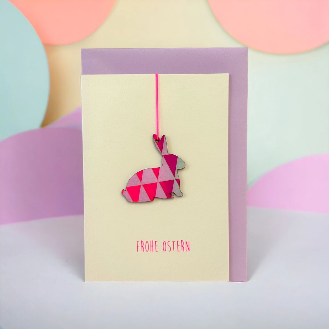 Klappkarte mit Hasen-Anhänger 'Frohe Ostern'