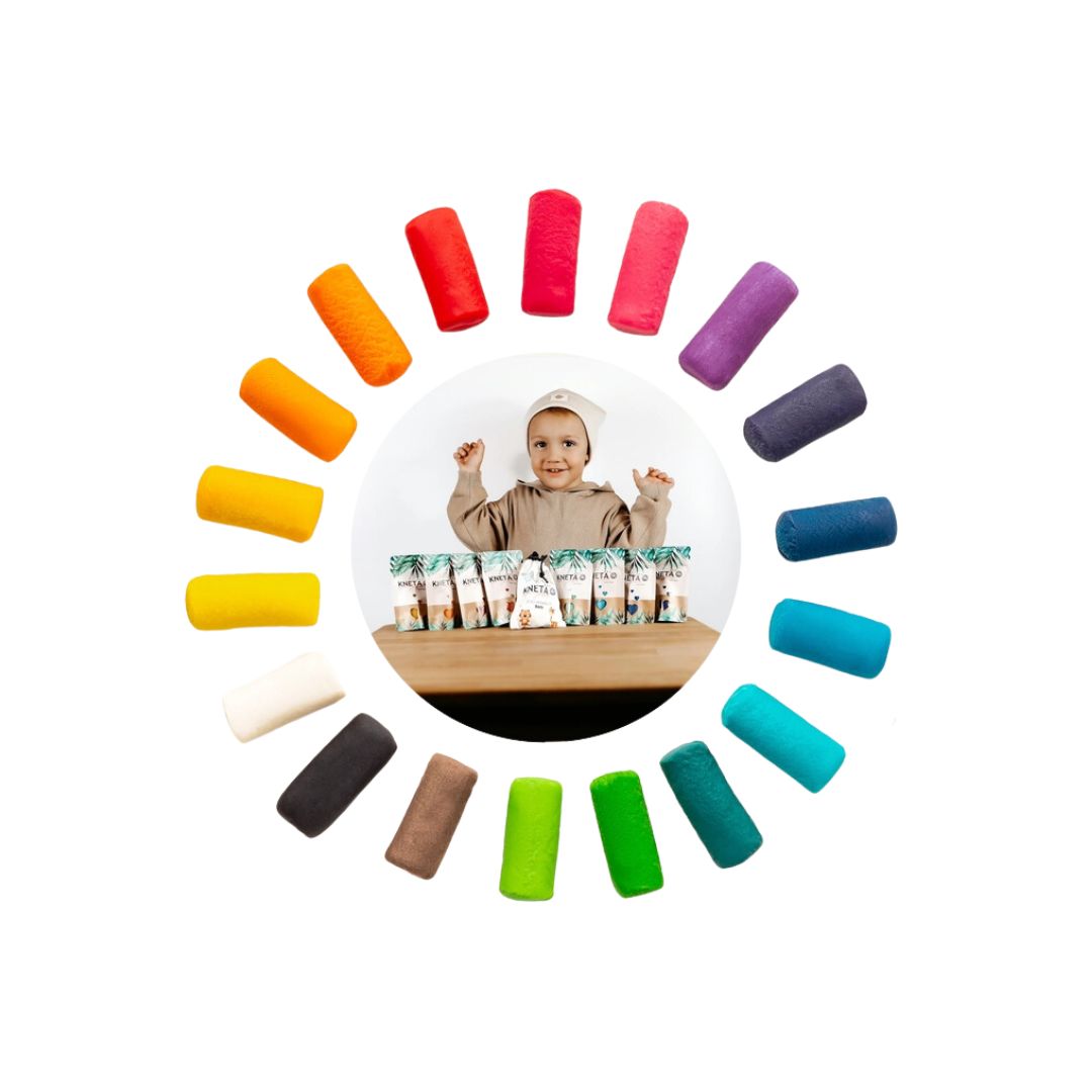 Die vegane Spielknete kommt in einer Vielzahl von Farben, die garantiert jedes Kind begeistern werden. Wähle aus 18 verschiedenen Farben, darunter: