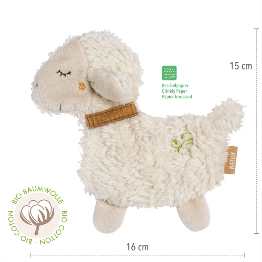 Mit einer Größe von 15 cm ist das Knister-Schaf perfekt für die kleinen Hände deines Babys geeignet. Es lässt sich leicht greifen und bietet deinem Kind die Möglichkeit, seine Tastfähigkeiten zu entwickeln. Das handliche Format macht es einfach, das Schaf überallhin mitzunehmen – sei es im Kinderwagen, im Auto oder beim Schlaf. Es wird schnell zum treuen Begleiter, der immer zur Stelle ist, wenn dein Baby ein wenig Geborgenheit braucht.