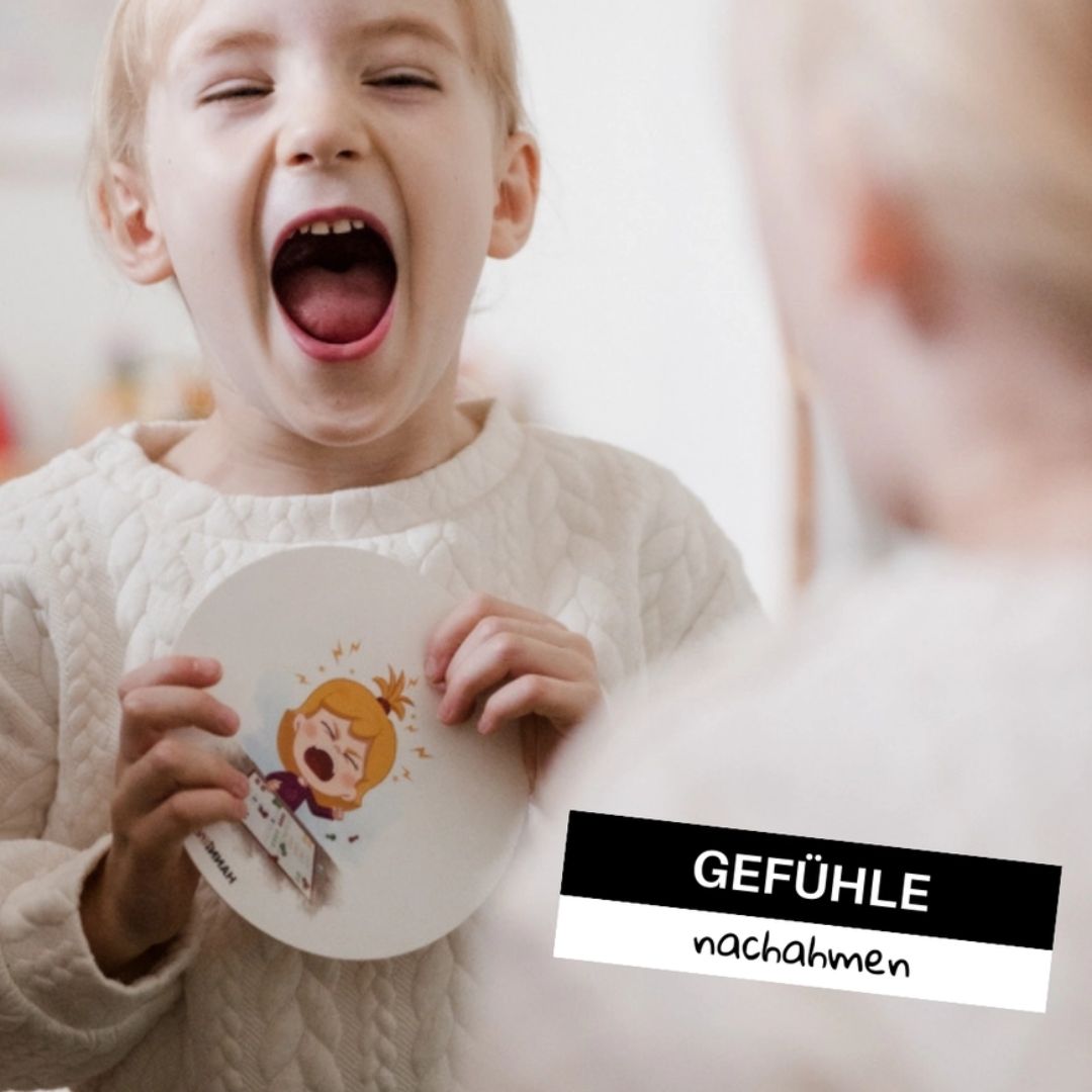 - Auf den Karten findet ihr nicht nur den emotionalen Gesichtsausdruck, sondern auch eine klare Beispielsituation, die das Gefühl ausgelöst hat