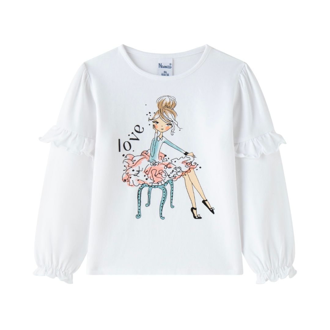 Produktinformationen T-Shirt mit Rüschen und Print weiß: