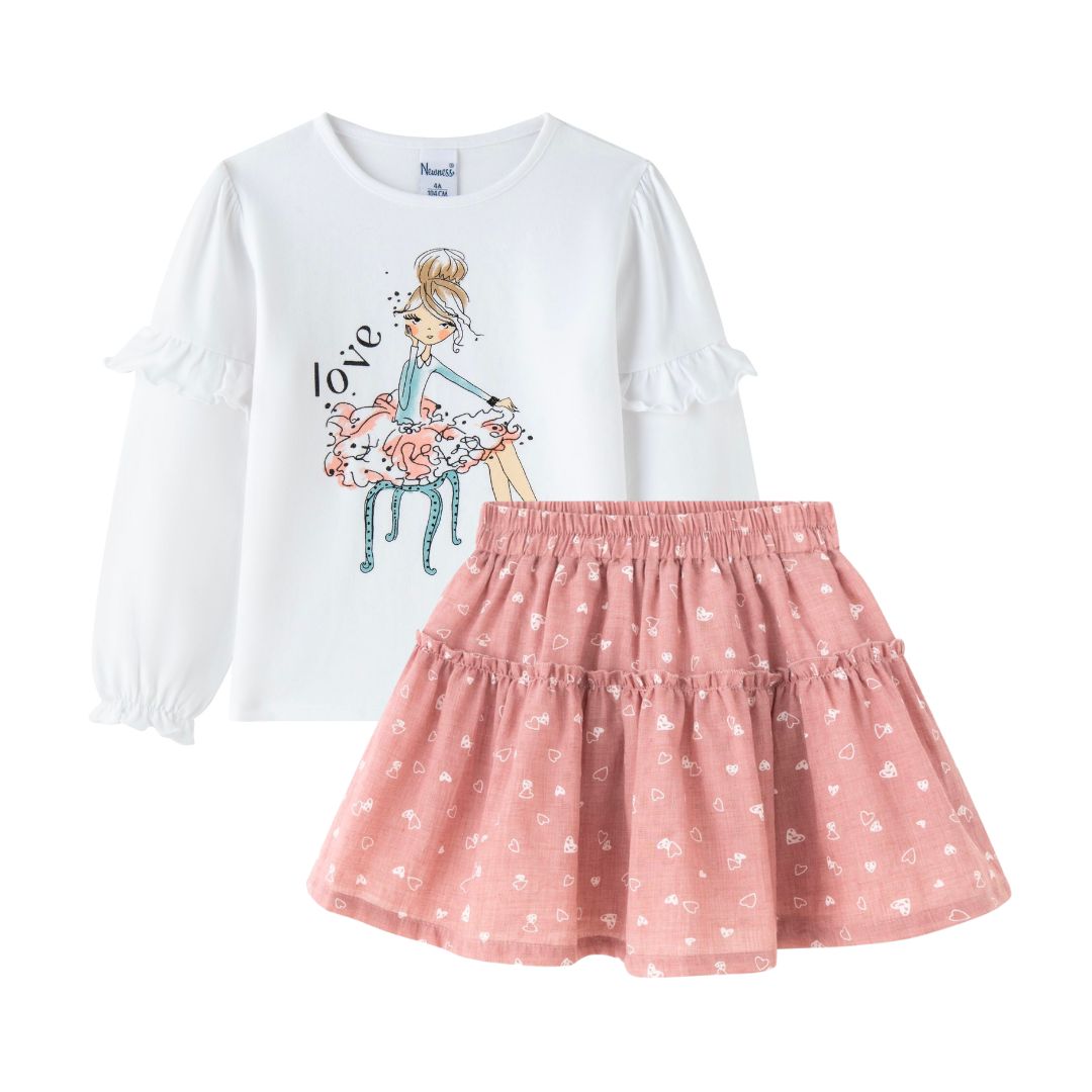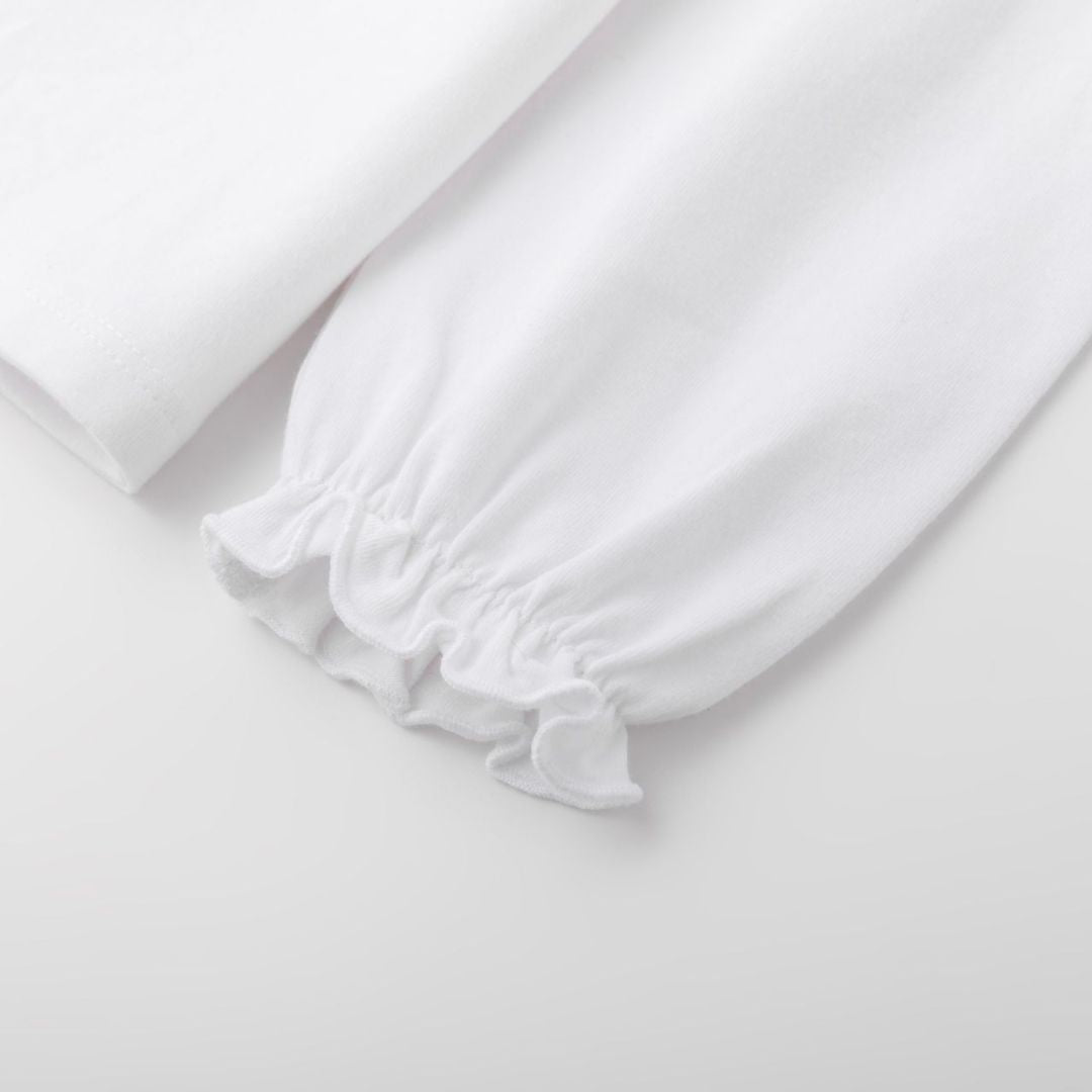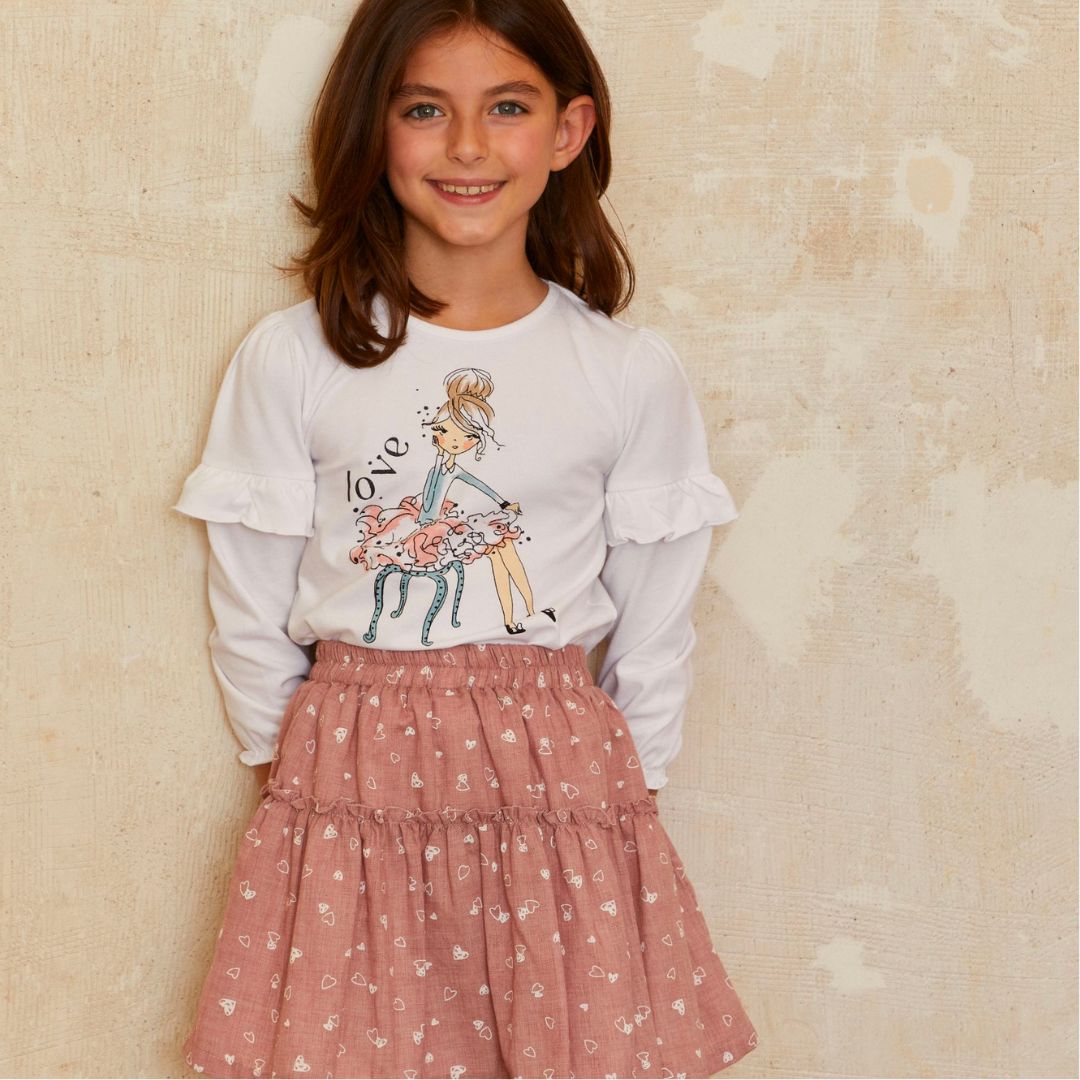 Unser T-Shirt aus elastischem Single-Jersey bietet nicht nur optimalen Tragekomfort, sondern auch ein bezauberndes Design. Der wasserbasierte Druck verleiht dem Shirt einen ansprechenden Look, während die Ärmel mit Rüsche und elastischem Band an Manschette und Rüsche für eine verspielte Note sorgen.