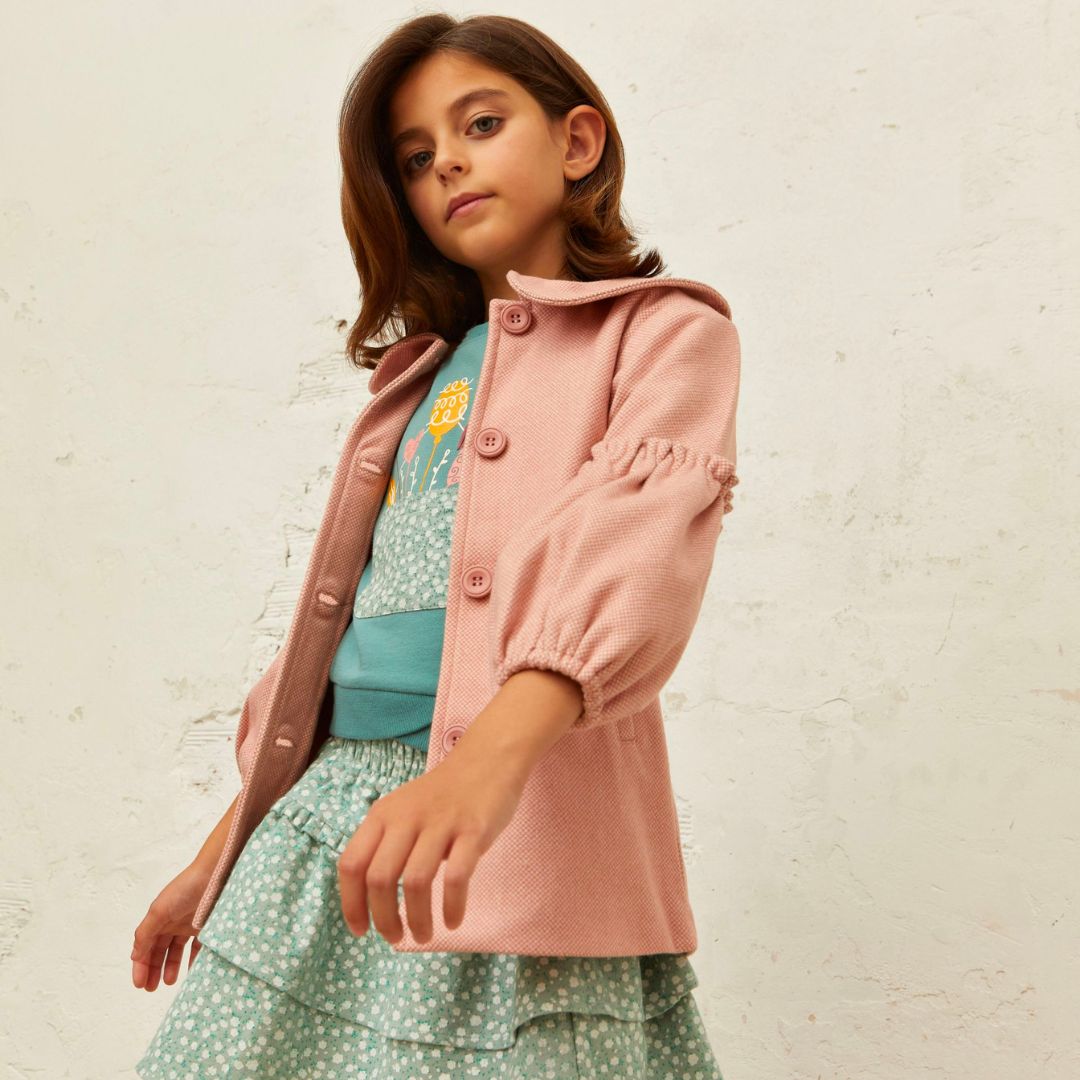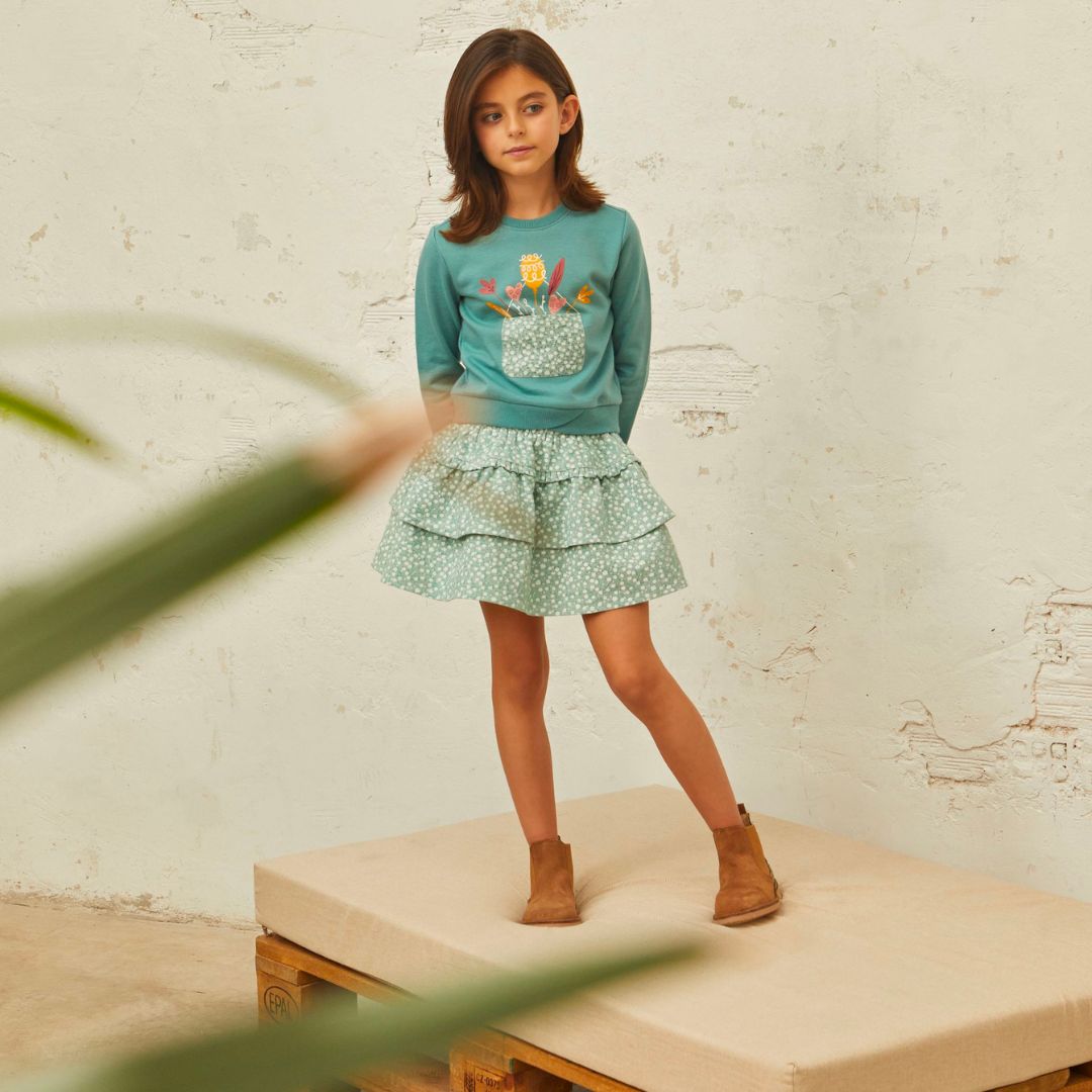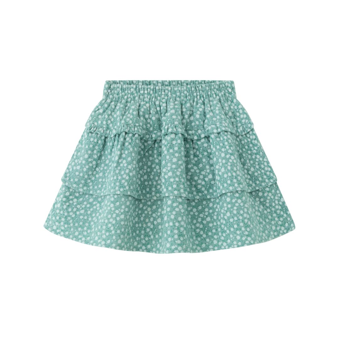 Der Bund ist mit einem innenliegenden Gummizug versehen, der nicht nur eine bequeme Passform gewährleistet, sondern auch das An- und Ausziehen zum Kinderspiel macht. Die Rüschen am Hüftschnitt verleihen dem Rock eine luftige Bewegung und einen entzückenden Look.