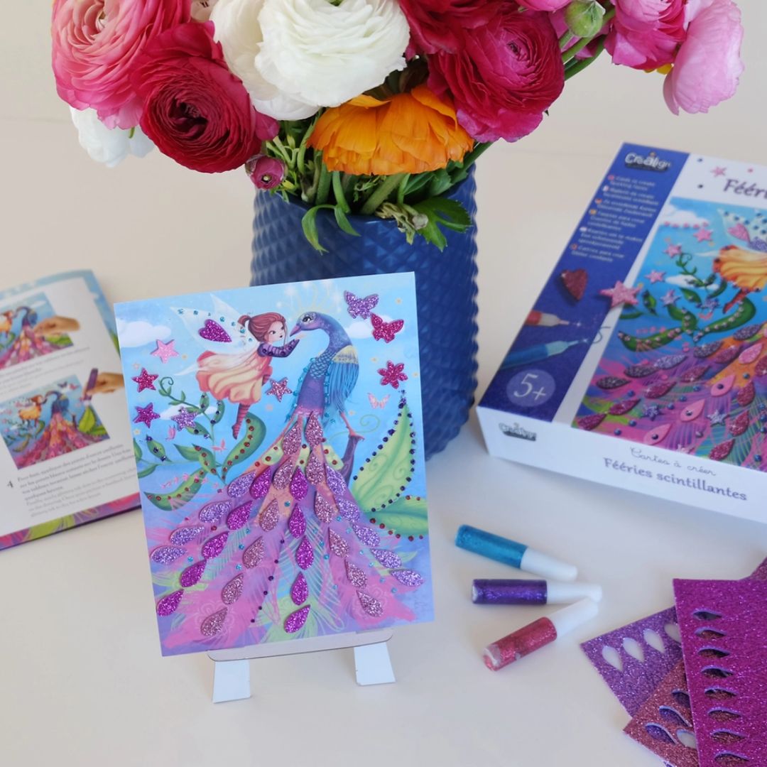 Eine Box voller Kreativität: Für kleine Künstler und Künstlerinnen: Kinder können mit unserer zauberhaften Kollektion von Glitzerformen und glänzenden Tintenstiften ihren Karten einen strahlenden Touch verleihen und sie zum Funkeln bringen. Ob als liebevolle Geschenke oder als beeindruckende Kunstwerke auf unserer bezaubernden Staffelei präsentiert, diese gestalteten Karten sind ein wahres Highlight.