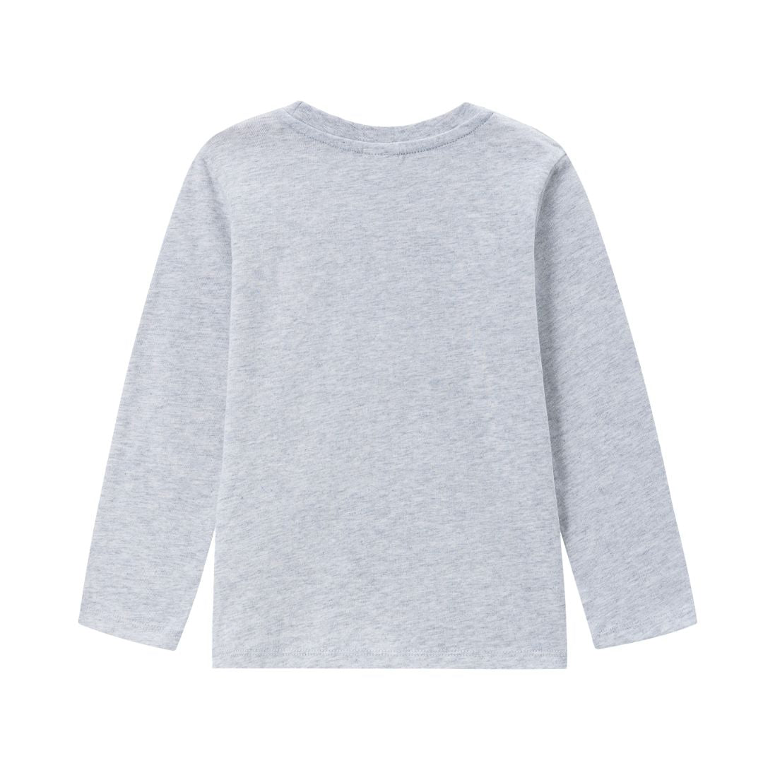 Die Farbgebung in Grau Melange ist dezent, stilvoll und unglaublich vielseitig. Sie lässt sich wunderbar mit anderen Farben kombinieren und passt zu Jeans, Jogginghosen, Shorts oder Latzhosen gleichermaßen. Ob mit einer knalligen Jacke oder einem farbigen Halstuch kombiniert – dieses Longsleeve macht jedes Outfit komplett. Grau Melange ist nicht nur modern, sondern auch besonders pflegeleicht und unempfindlich gegenüber kleinen Alltagsabenteuern.