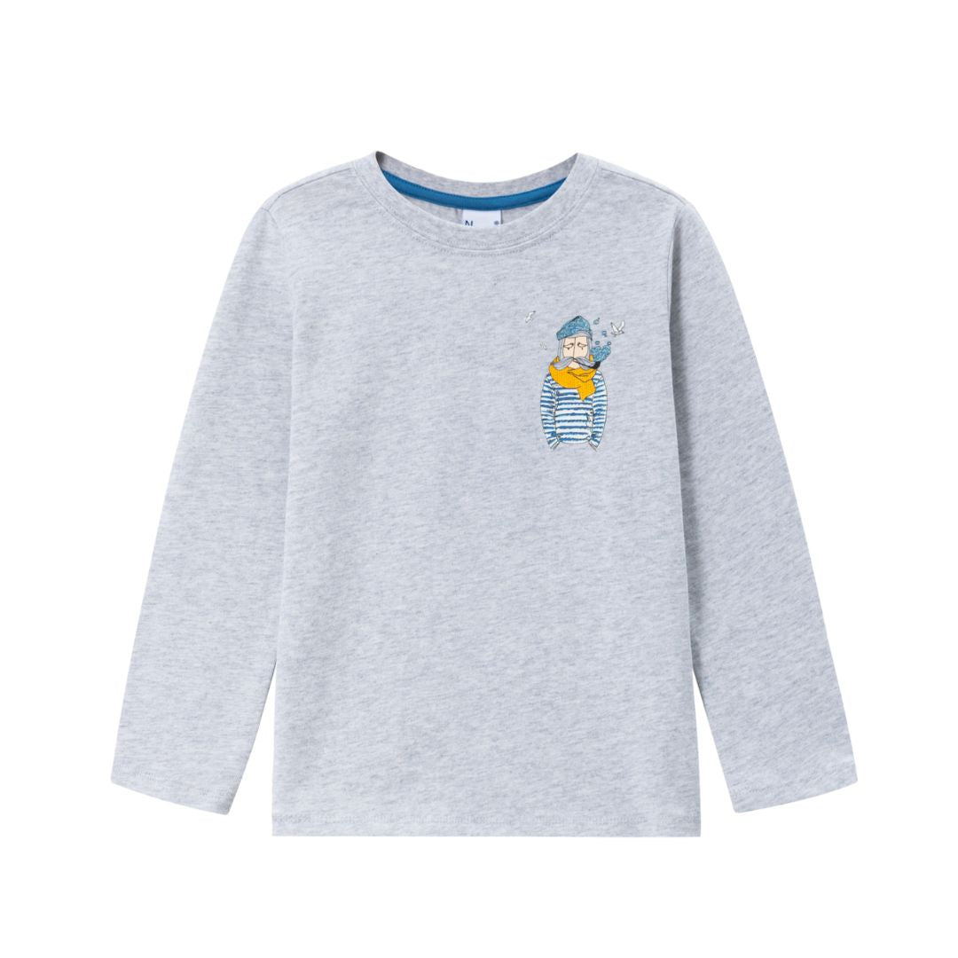 Longsleeve für Jungen „Seemann“ in Hellgrau – maritimer Look trifft auf kindgerechten Komfort