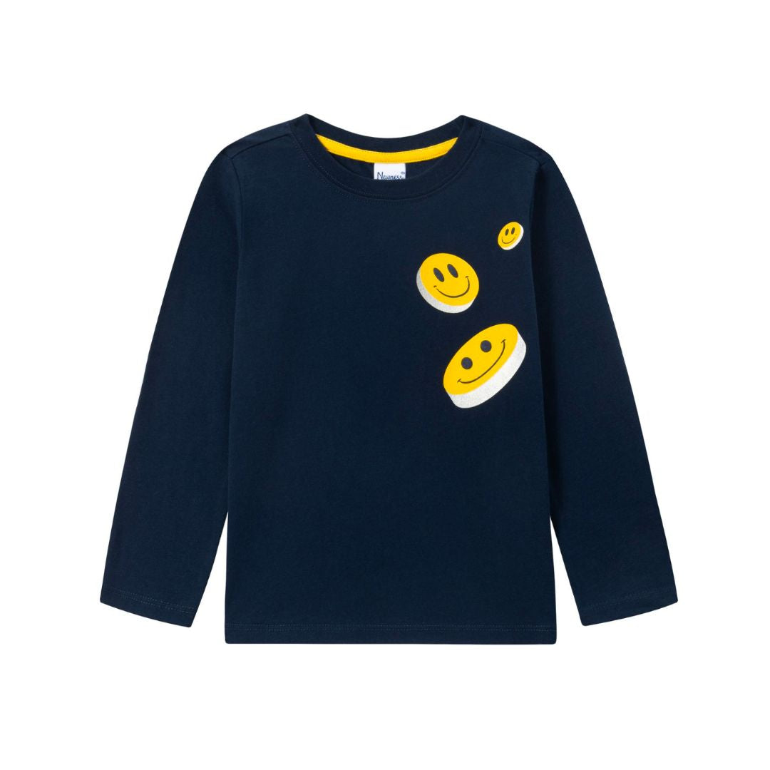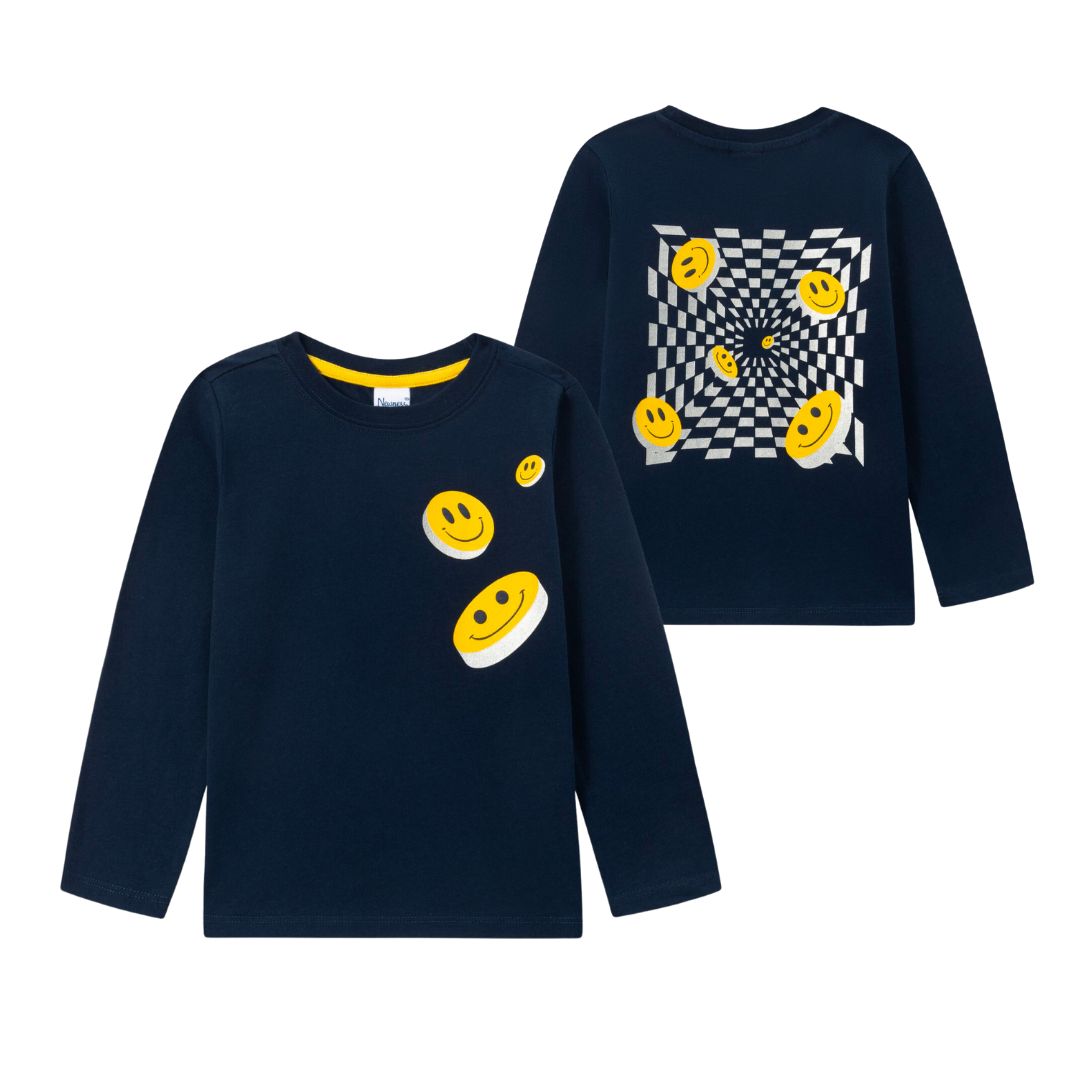Langarm-T-Shirt für Jungen mit Rundhalsausschnitt, grafische Gesichter auf Vorder- und Rückseite, Jungen Longsleeve in Farbe marineblau, weich und bequem, hergestellt aus hochwertigen Materialien