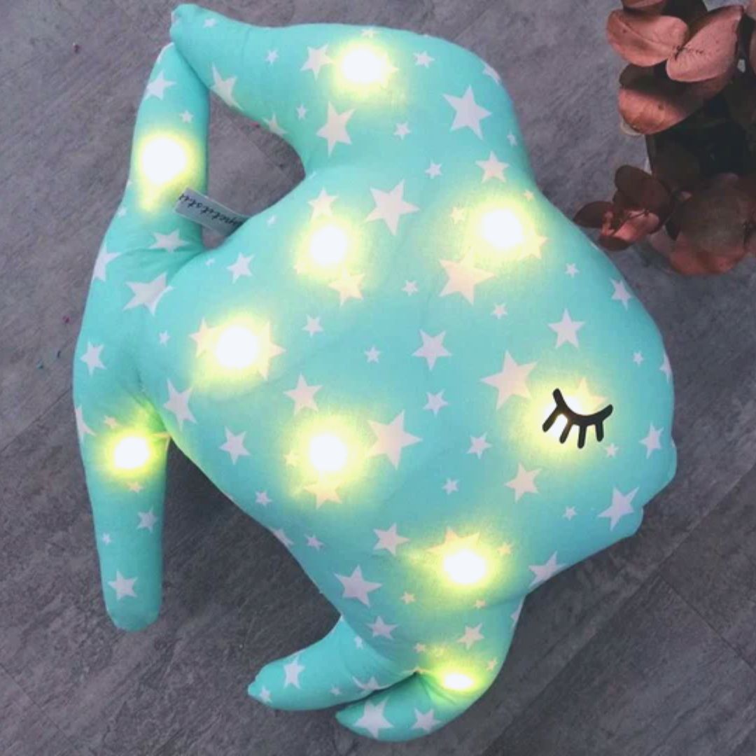 Gute Nacht mein Süßling: Mit einem angenehm warmen Licht auf Knopfdruck schenken unsere niedlichen, stimmungsvollen Nachtlichtkissen den Kleinsten ein beruhigendes Gefühl von Sicherheit und Geborgenheit. Die dekorativen Schlafbegleiter sind aus 100% Baumwolle mit Oeko-Tex-Siegel und ein perfektes Geschenk für die kleinen Knutschkugeln.