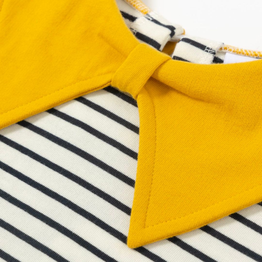 Das gestreifte Mädchen Sweatshirt und die gelbe Schleife sorgen für einen einzigartigen Look, der jedes Kind und seine Eltern begeistern wird. Egal, ob für den Alltag oder besondere Gelegenheiten, dieses Sweatshirt für Mädchen wird mit seinem Stil und seinem süßen Design überzeugen.