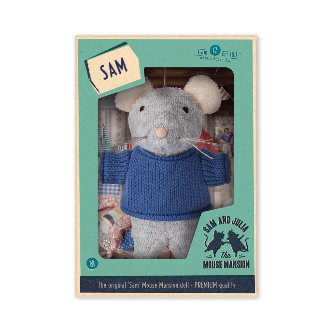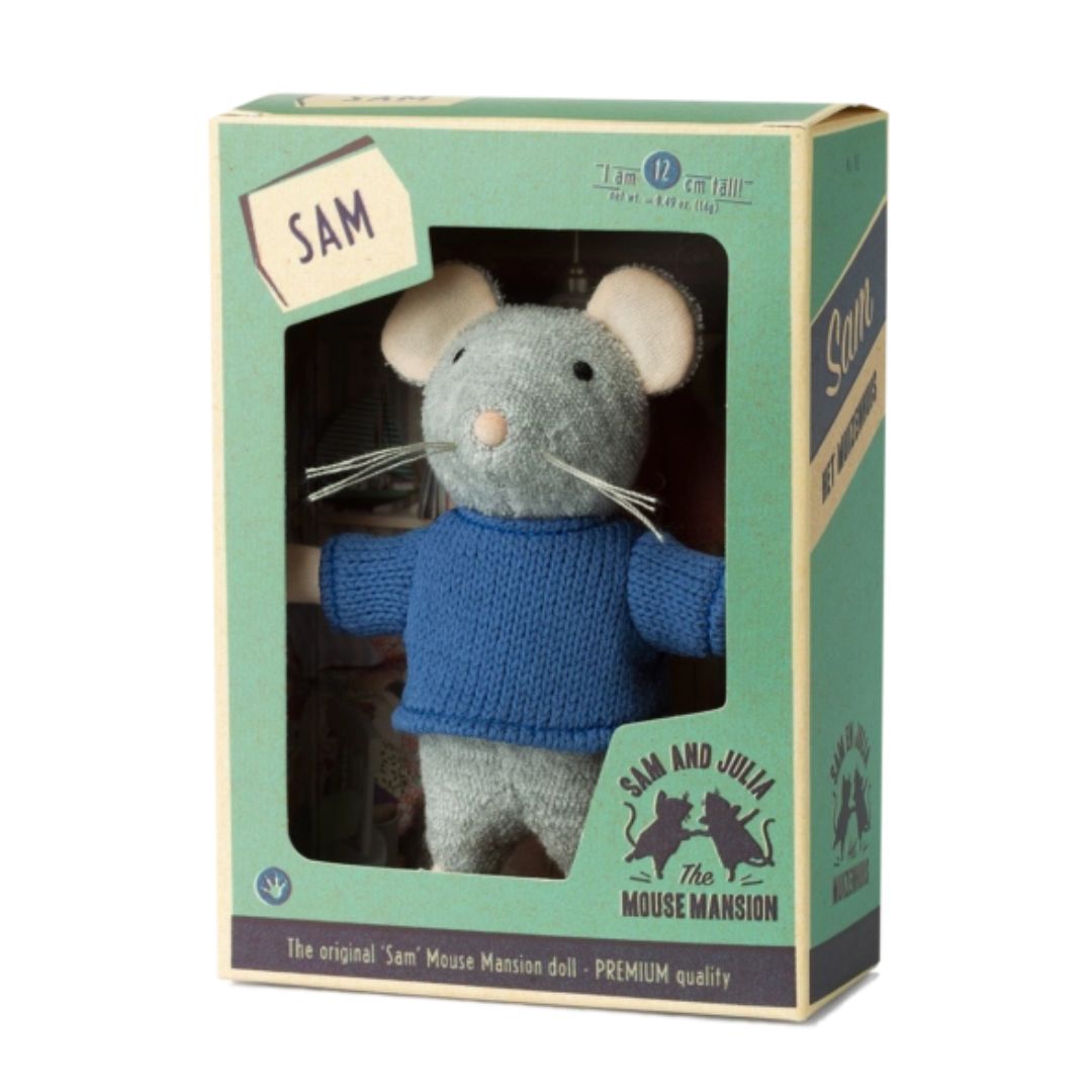 Taucht in die faszinierenden Geschichten von Mouse Mansion ein, indem Ihr diese entzückende Mauspuppe namens Sam kennenlernt. Sam ist 12 cm groß, äußerst robust und herrlich kuschelweich. Mit ihm können aufregenden Abenteuer von Sam und Julia nachgespielt und Sam kann als treuer Begleiter überall mit hingenommen werden. Sam ist ein Bewohner der Mouse Mansion, lebt inmitten des Geschehens an der Vorderseite des Maushauses. Dort teilt er sein Zuhause mit seinem Vater, seiner Mutter, seinen Brüdern, seinen Schwestern, seinen Großeltern und vielen anderen Verwandten. Sam ist von Natur aus schüchtern und äußerst höflich. Doch in Julias Gesellschaft wagt er sich zu Dingen, die er alleine niemals tun würde.