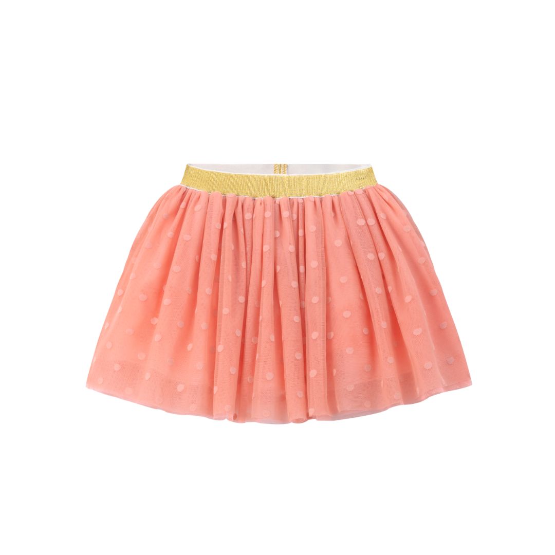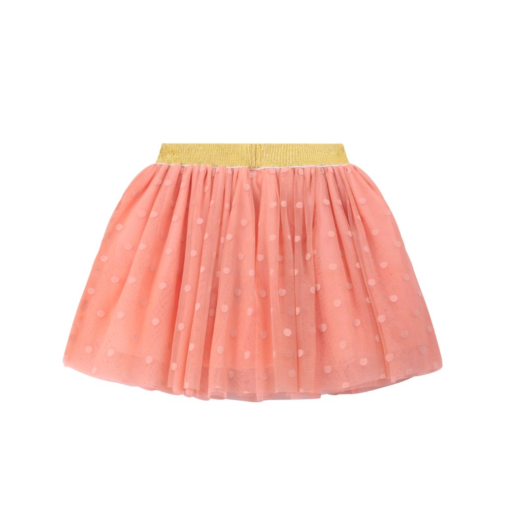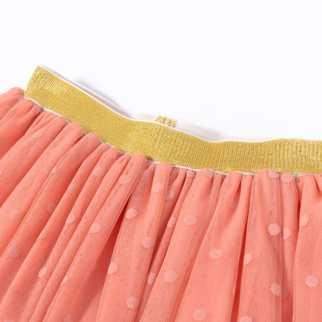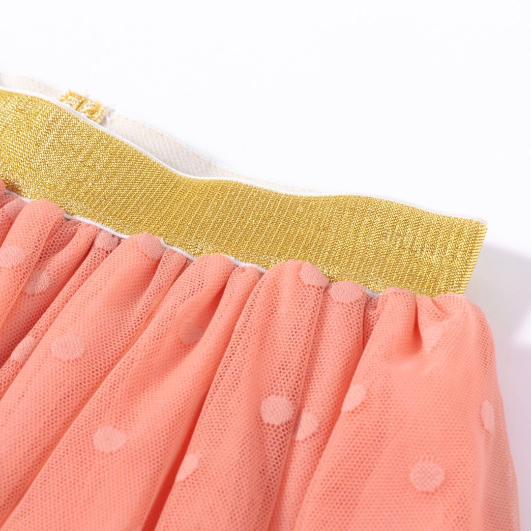 Ausgestellter Mädchenrock aus rosafarbenem Tüll mit Punkten und silbernem Glitzerbund