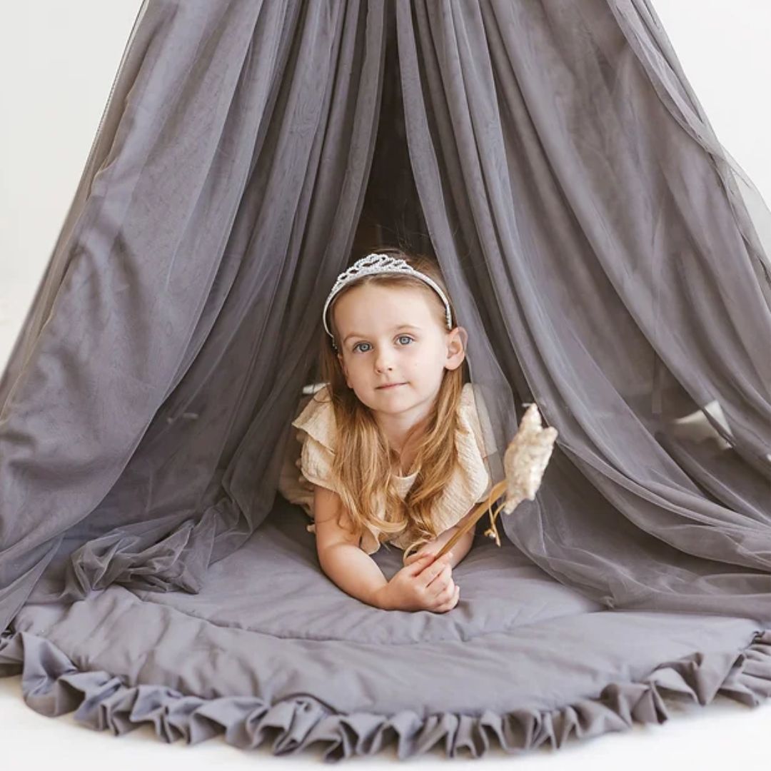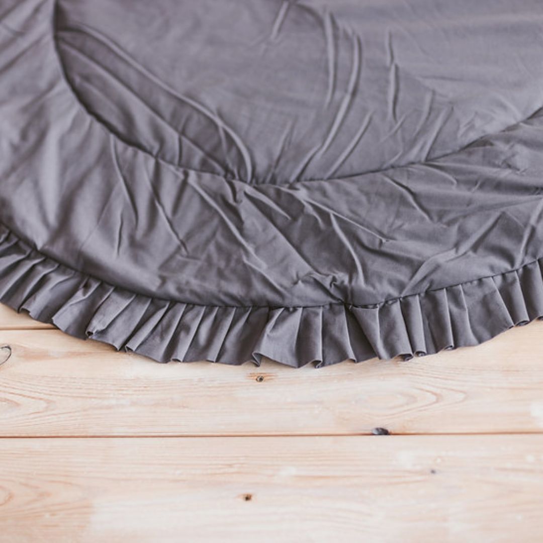 Die Kinderspielmatte in der Farbe grau bietet einen nachhaltigen und bequemen Untergrund zum Krabbeln und Spielen und passt perfekt zu unseren Spielzelten. Das doppelseitige Design mit weicher Innenseite und geraffter Oberfläche schafft eine gemütliche Atmosphäre und kann als Bodenmatte, Spielmatte oder als Teppich für das Kinderzimmer verwendet werden.