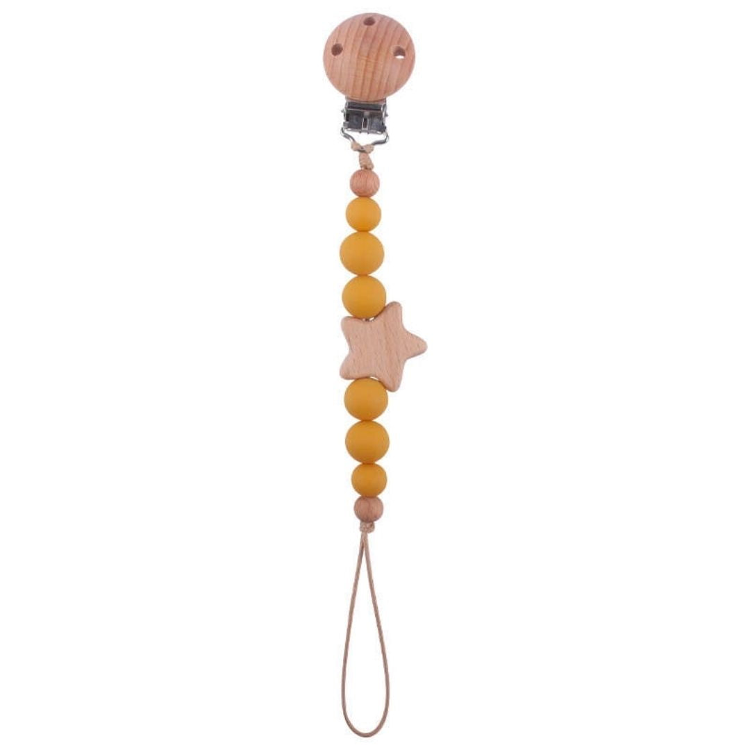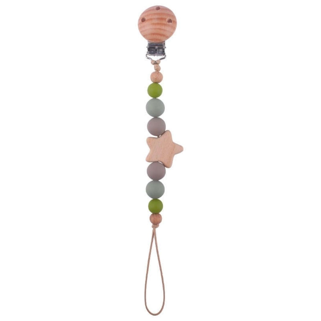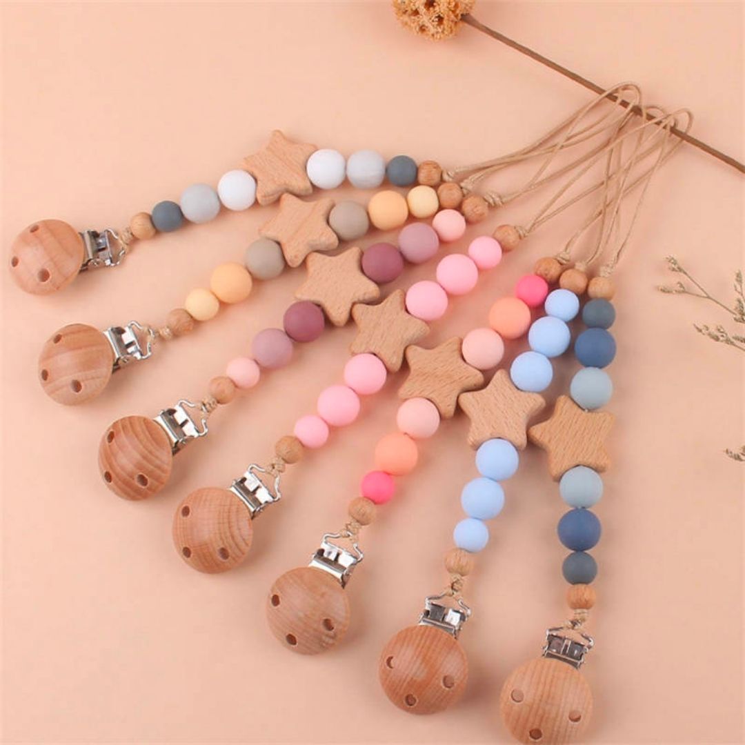 Bunte Silikonperlen-Schnullerkette für Babys mit großem Stern aus Buchenholz