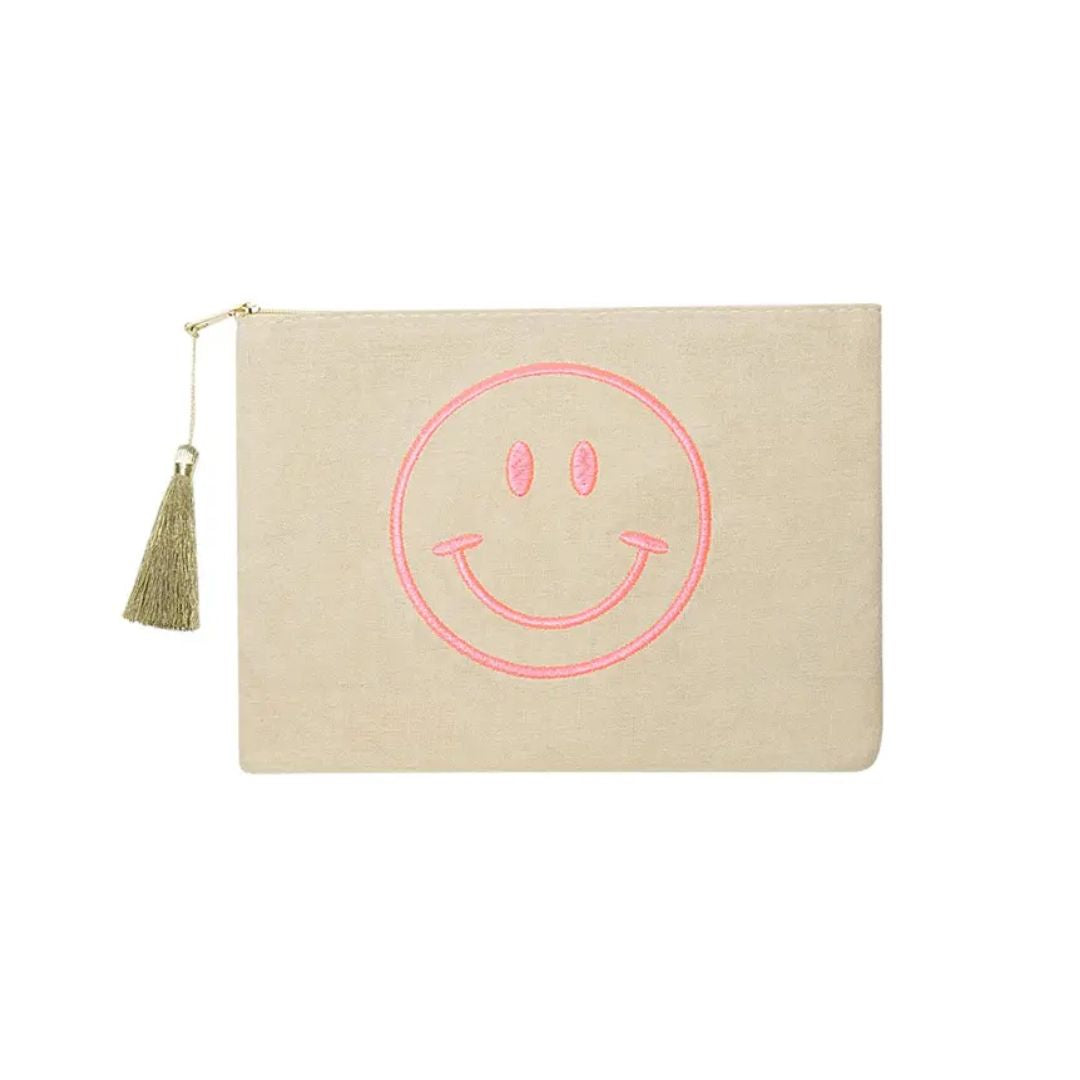 Makeup Bag Smiley Beige & Pink Cotton