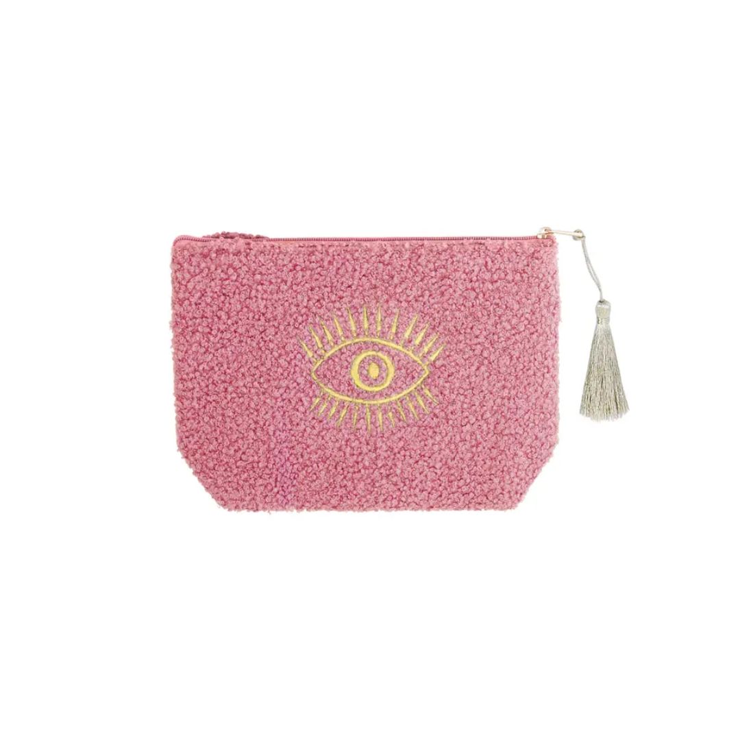 Diese exklusive Make-up Tasche in einem zarten Pinkton ist nicht nur ein stylisches Accessoire, sondern auch ein praktischer Begleiter für deine Kosmetikartikel. Mit ihrem weichen Teddyfell-Design und der hochwertigen goldenen Augen-Stickerei setzt sie elegante Akzente und sorgt für einen Hauch von Luxus in deinem Alltag.