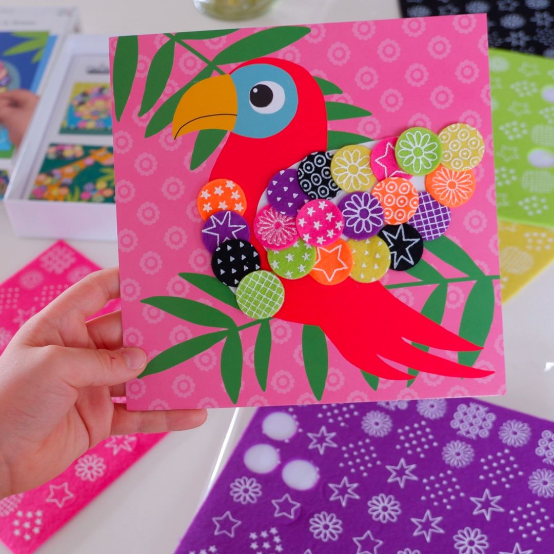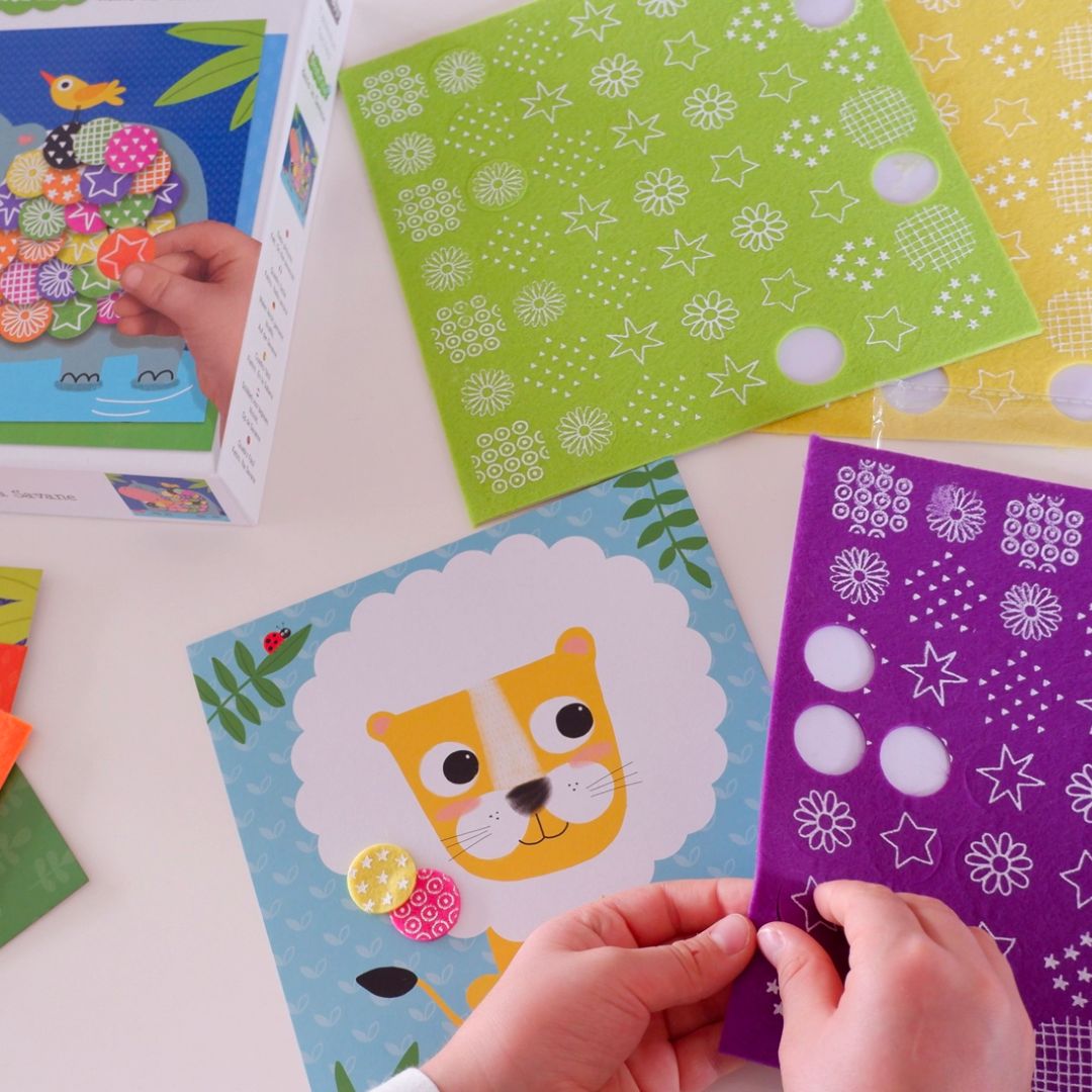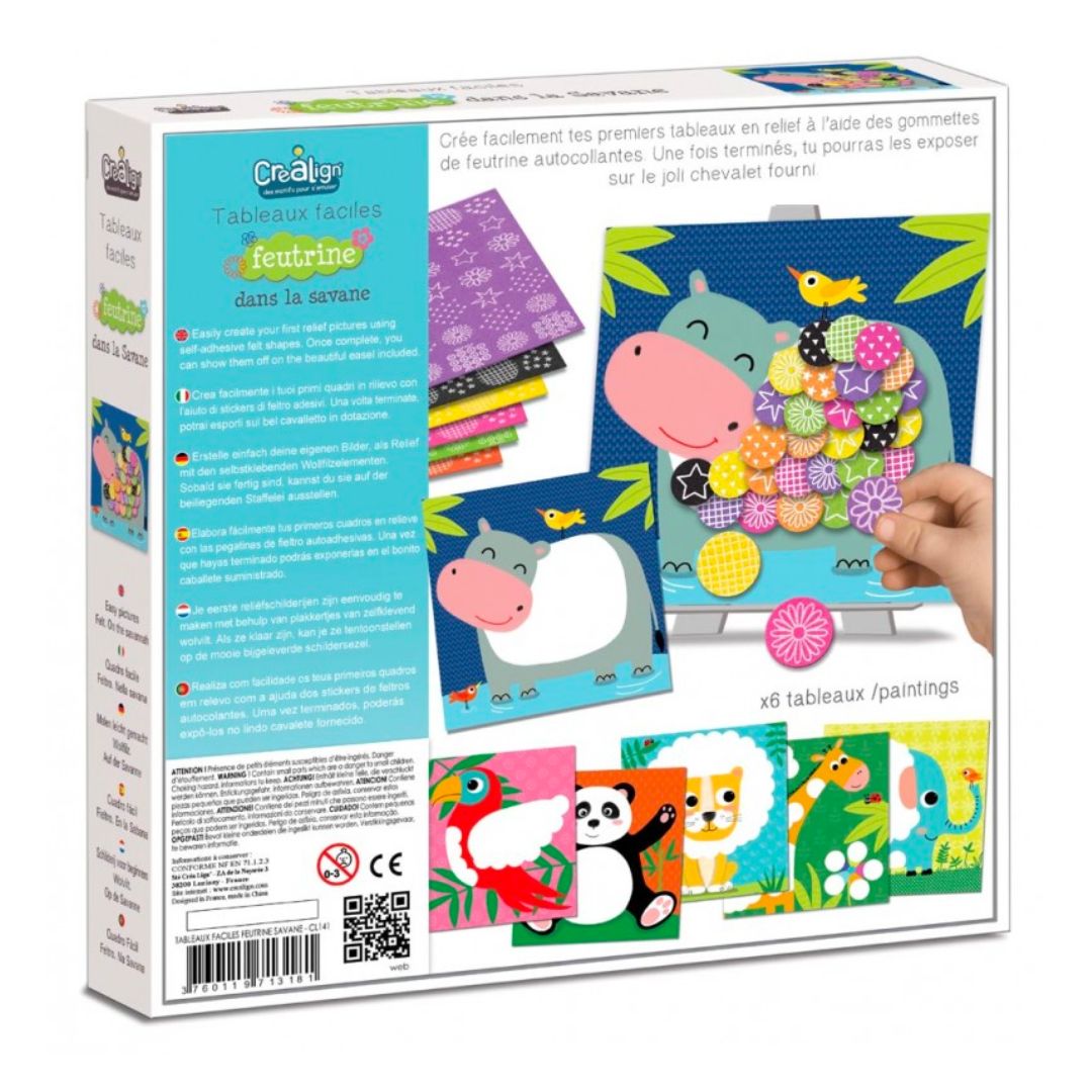 Mit diesem Kreativ-Set können kleine Süßlinge eigene Reliefbilder mit selbstklebenden Filzaufklebern gestalten. Sie können schöne, sanfte Gemälde erstellen! Sie werden erfahren, wie sie ihre künstlerische Seite durch die Kombination von Farben und Mustern offenbaren können.