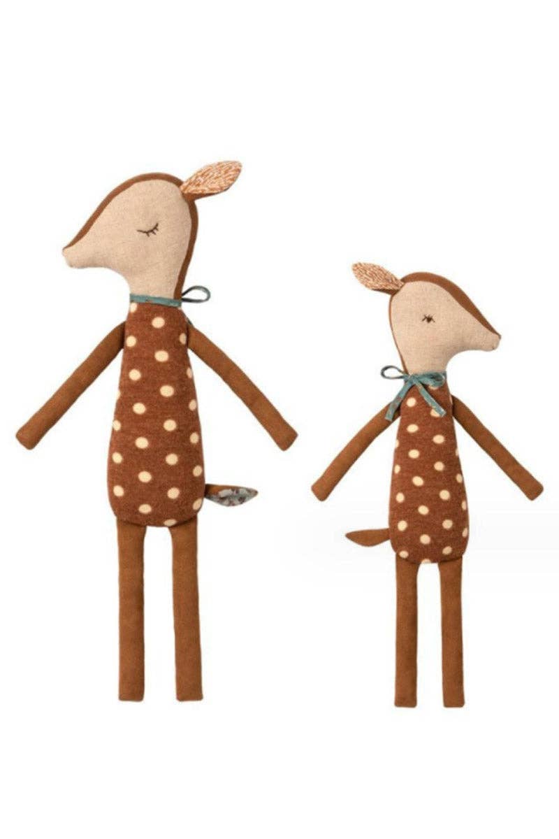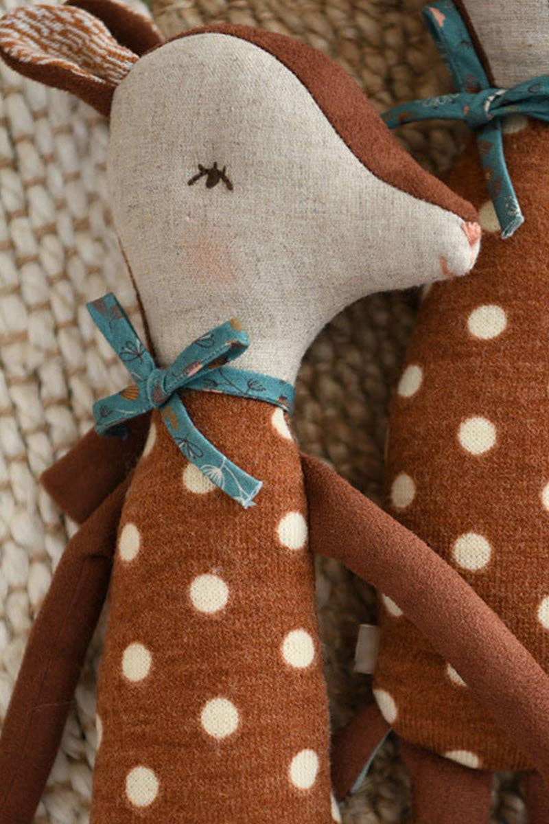 Rehäugige Kuschelpuppe mit Hirsch-Cartoon-Motiv – der perfekte Kuschelbegleiter!