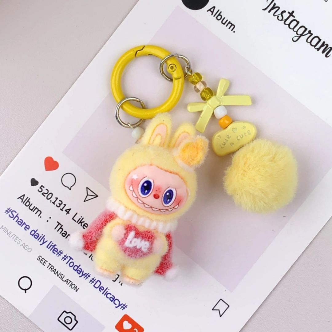 Labubu inspirierter Schlüsselanhänger 'LOVE' Pompon gelb
