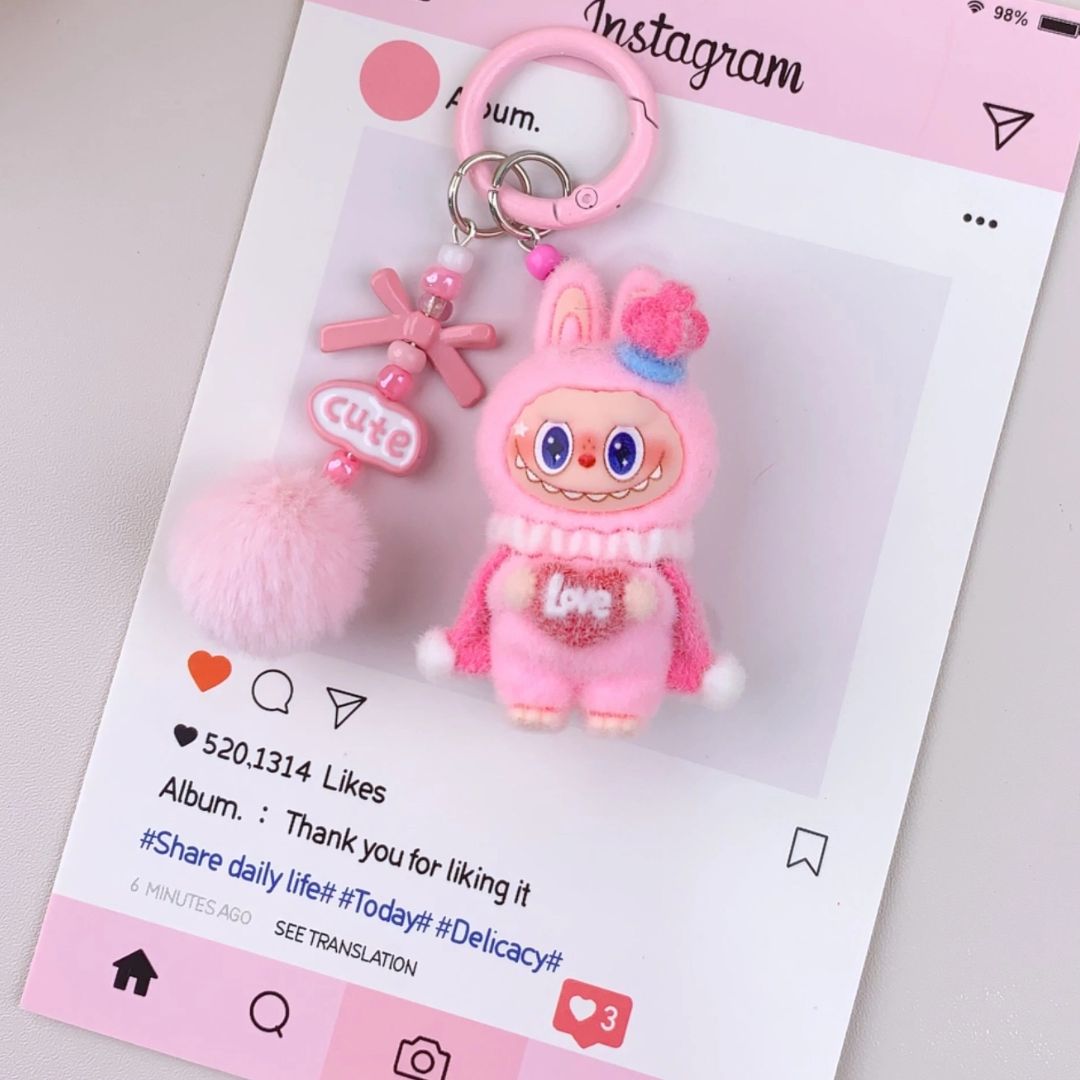 Labubu inspirierter Schlüsselanhänger 'LOVE' Pompon pink
