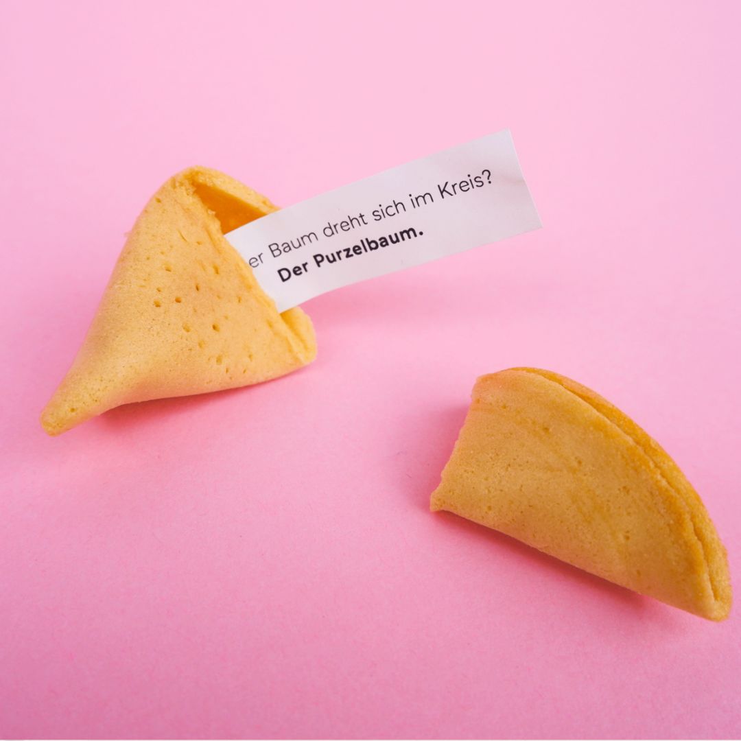 Das Besondere: In jedem Keks steckt ein kleiner Zettel mit Witz. Der Zettel wird vor dem Verzehr vorsichtig herausgenommen – so wird der Lachkeks zum gelungenen Überraschungsei für deine Geschmacksknospen und dein Stimmungshoch.