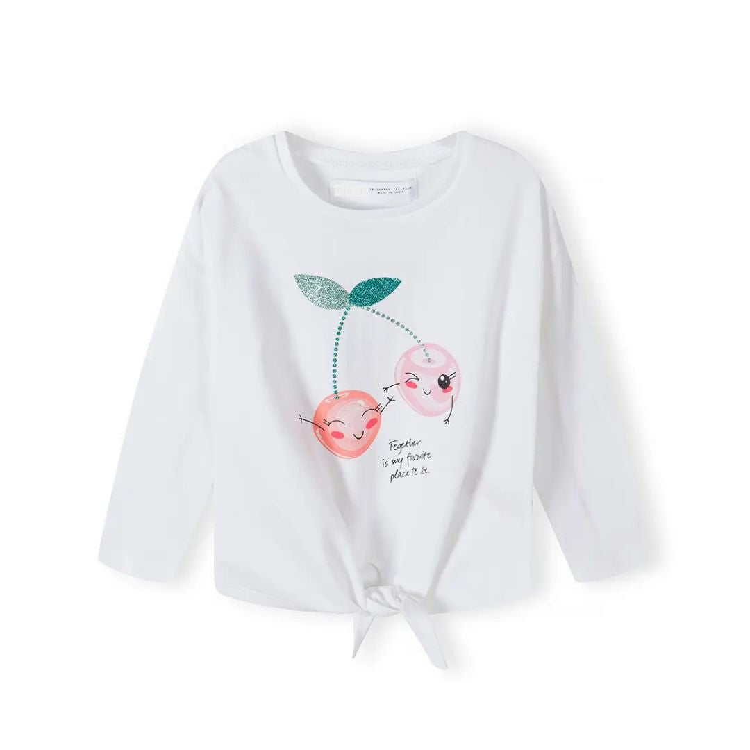Dieses süße Langarm-T-Shirt mit überschnittenen Schultern verfügt über ein niedliches Knotendetail am vorderen Saum und eine süße Herzmuster-Dekoration.