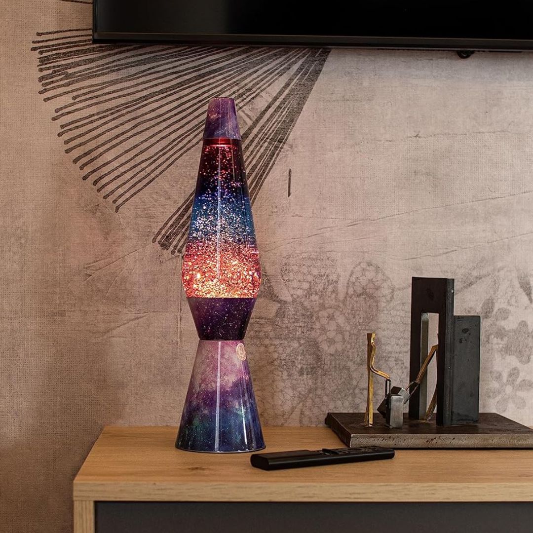 Wenn Du genug von Lampen hast, die überall gleich aussehen, setzt die Lavalampe Galaxy einen mutigen und frischen Akzent. Ihre mehrfarbige Basis wirkt dynamisch und aufregend – fast wie eine leuchtende Supernova. Diese Lampe ist für alle, die sich nicht mit Standardlösungen zufriedengeben möchten, sondern ein dekoratives Element suchen, das Persönlichkeit zeigt. Sobald Du die Lampe einschaltest, entsteht ein unvergleichlicher Effekt, der sowohl modern als auch verspielt wirkt. Sie bringt Farbe, Bewegung und eine gewisse Magie in Deine Räume – und das jeden Tag aufs Neue.