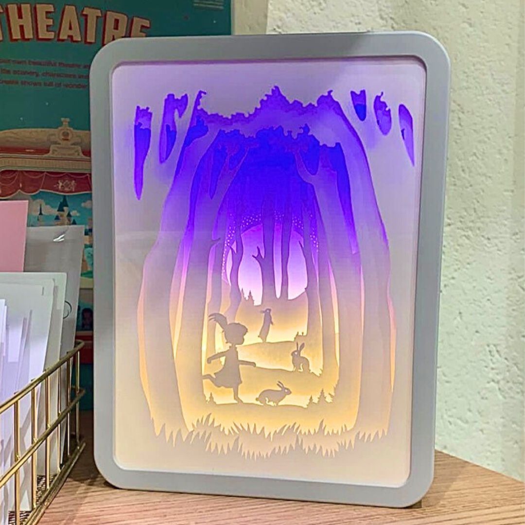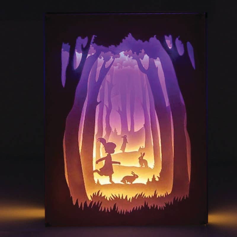 Dieser wunderschöne Leuchtkasten ist unter Verwendung mehrerer Schichten aufwendig geschnittenen Papiers entstanden. Die Lightbox erzeugt eine atemberaubende 3D-Szene, die zum Leben erwacht, wenn sie durch LED-Leuchten beleuchtet wird. Es ist, als wäre die Szene auf magische Weise zum Leben erweckt und in jedem Raum ein warmes und einladendes Ambiente geschaffen.