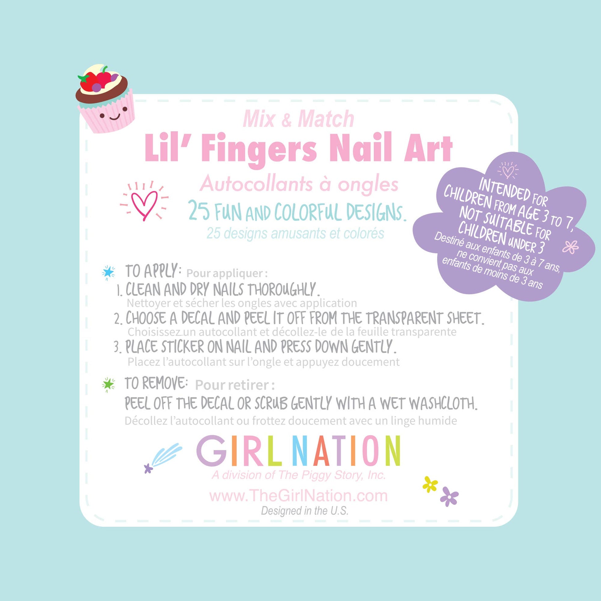 Das Lil' Fingers Nail Art Set misst 3,75" x 6" und hat die ideale Größe, um überall verstaut oder mitgenommen zu werden. Ob auf Reisen, im Kinderzimmer oder als kleine Ablenkung im Alltag – die Sticker sind schnell griffbereit und jederzeit einsatzbereit. Der schnelle Wechsel von Designs macht das Set dynamisch und abwechslungsreich. Für Kinder, die gerne zeigen, was ihnen gefällt, bieten die Sticker eine perfekte Möglichkeit, ihre Persönlichkeit auszudrücken.
