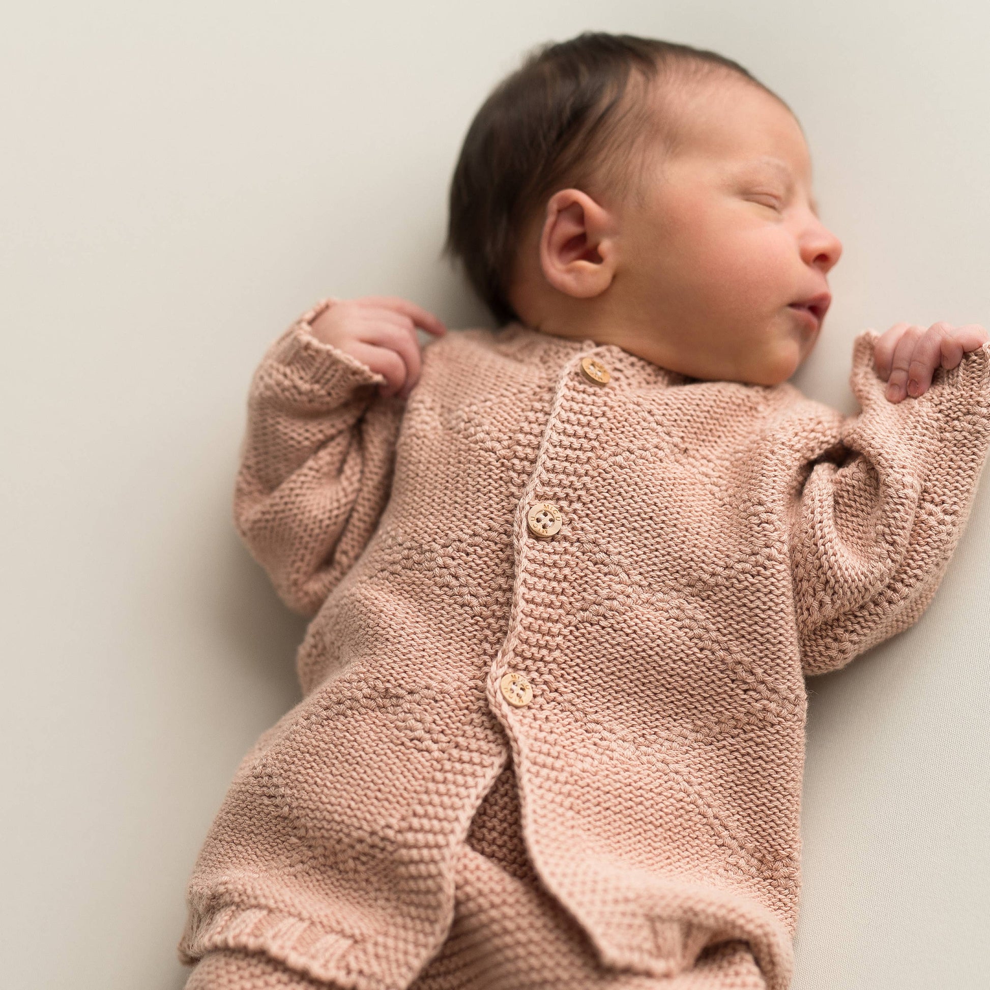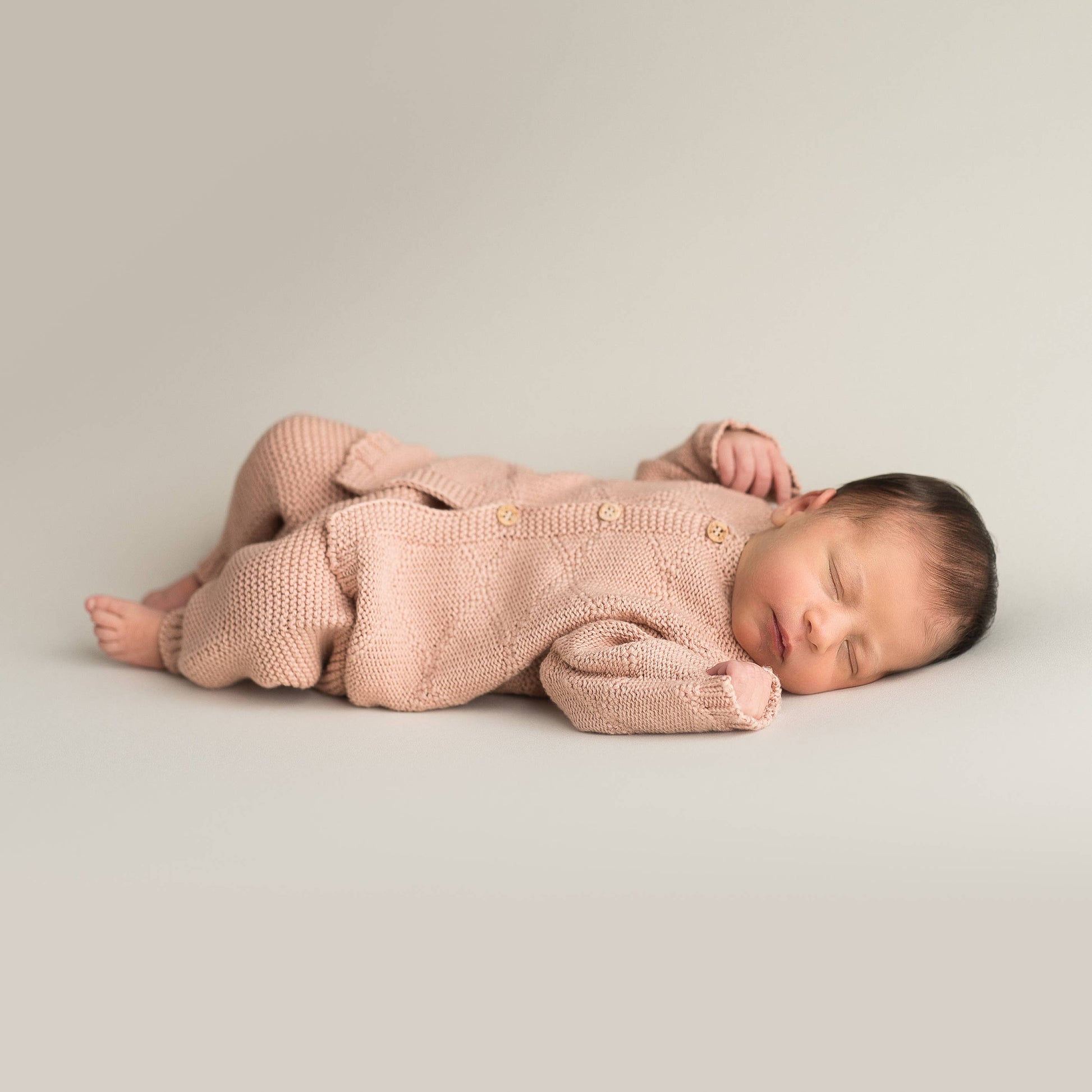 Hose mit Perlstrick aus 100% Bio-Baumwolle in  Barcelona hergestellt. Es ist eine Hose ohne Innennähte, mit der sich perfekt dem Körper des Babys anpasst.