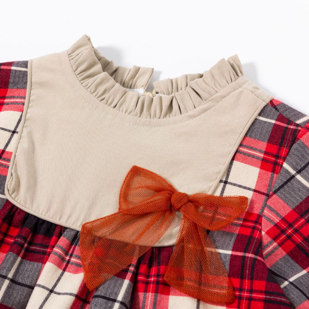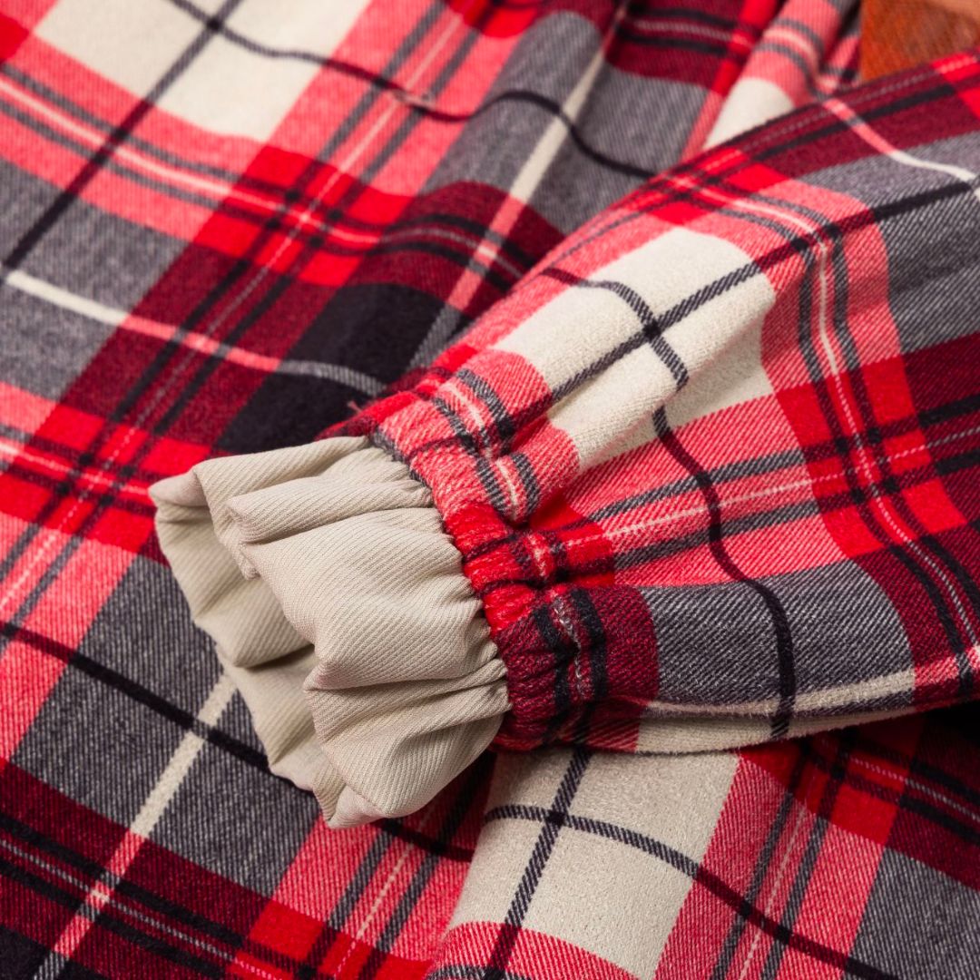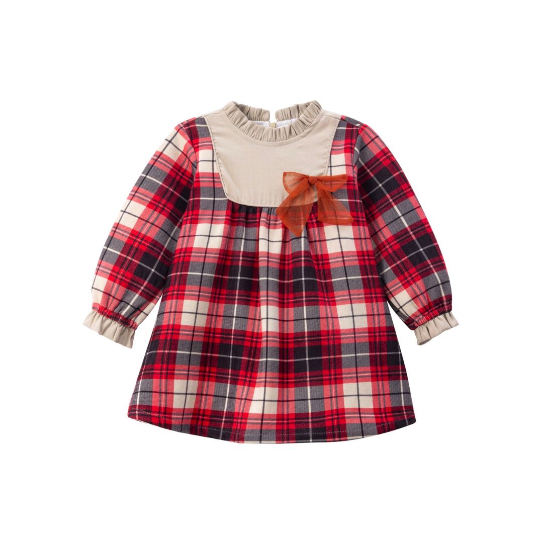 Unser Mädchenkleid mit langen Ärmeln vereint Stil und Gemütlichkeit in einem zauberhaften Design. Die rote Passe und die niedliche Schleife auf der Vorderseite verleihen dem Kleid eine besondere Note, während der rot karierte Stoff dem Look eine fröhliche Ausstrahlung gibt.