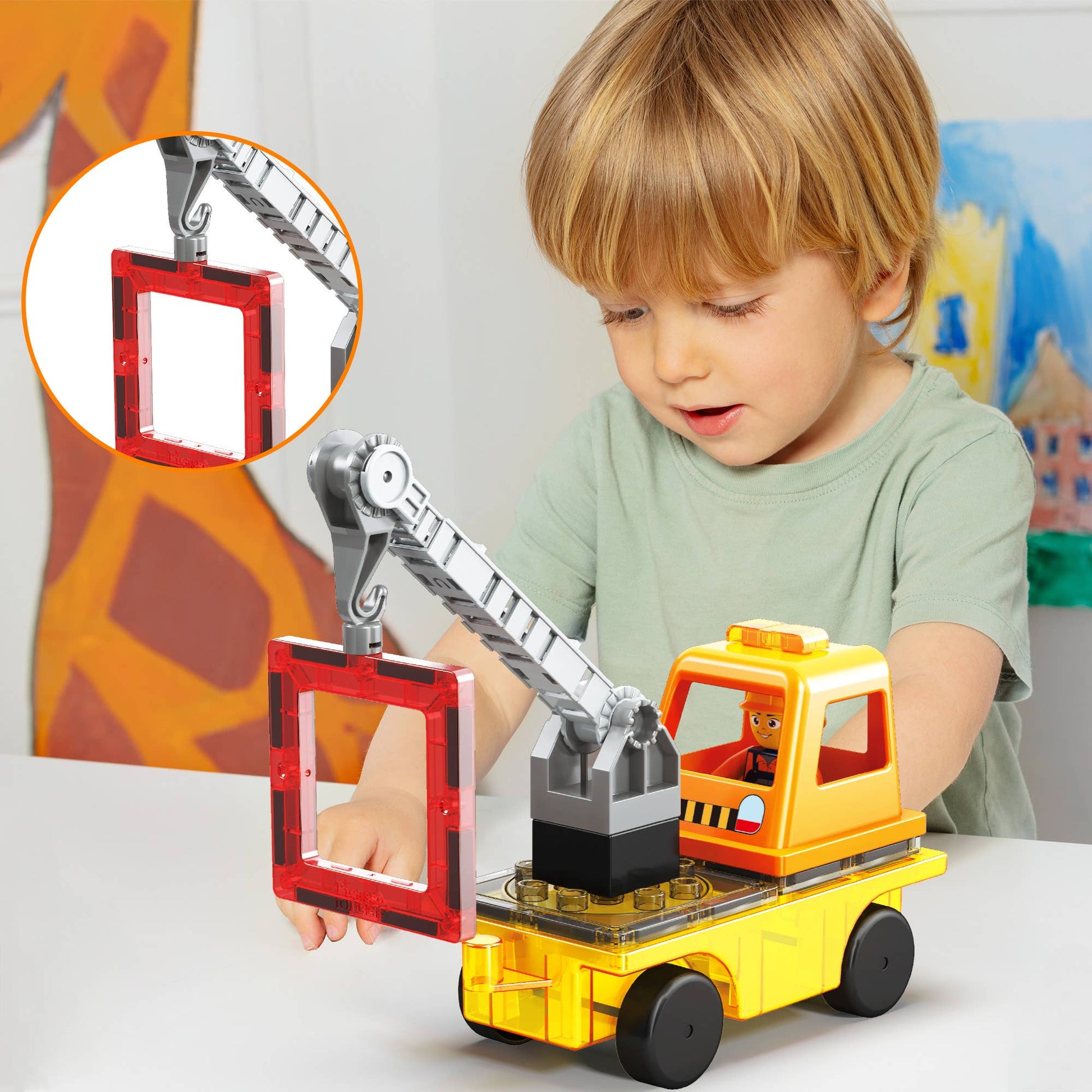 Magnetbausteine 3-in-1-Kran, Kipper, Leiterwagen – Endlose Möglichkeiten für Kreativität und Spielspaß