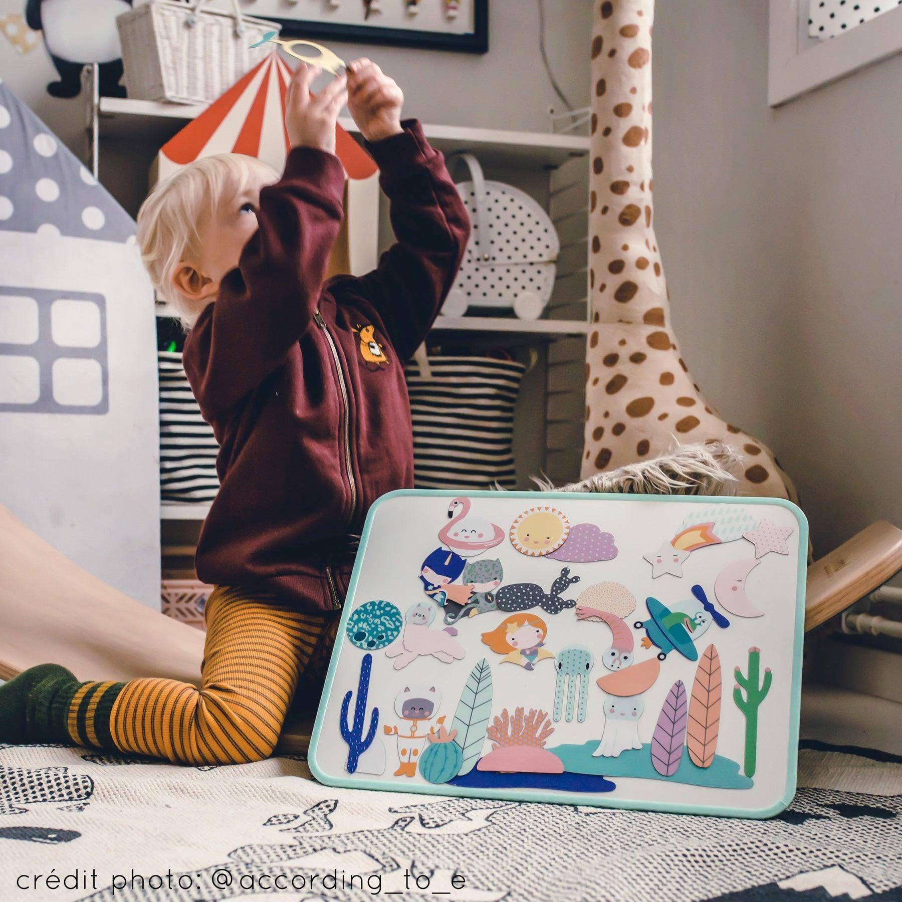 Wir präsentieren mit dieser magnetischen Whiteboard-Tafel in Opaline-Farben eine Neuinterpretation der Schiefertafel aus unserer Kindheit! Leicht, dünn und bruchsicher – die Tafel ist ideal für unterwegs: im Restaurant, Auto oder beim Arzt. Perfekt geeignet für Kinder ab 3 Jahren. Auf der magnetischen Oberfläche können Kinder Magnete kombinieren, zeichnen und schreiben. Die weiße Oberfläche ist für die Verwendung mit Whiteboard-Markern konzipiert. Besonders zu empfehlen sind die Stabilo Woody 3 in 1 Stifte, die nicht austrocknen, geruchsneutral sind und sich mit Wasser abwaschen lassen. Produktdetails: - Magnetische Whiteboard-Tafel - Maße: 30 x 40 cm - Farbton: Opaline - Magnete nicht enthalten Pflegehinweis: Mit Wasser oder einem lösungsmittelhaltigen Reiniger ohne Aceton und ohne Glycerin reinigen. Weiches Tuch oder Baumwolle verwenden, um die Oberfläche nicht zu zerkratzen.