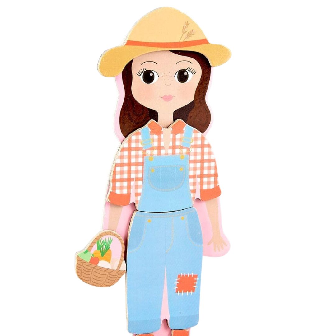 Alle Kleidungsstücke und Accessoires sind aus Holz gefertigt und mit Magneten ausgestattet. Dadurch lassen sie sich leicht anbringen und wechseln. Kinder können Sofia immer wieder neu stylen und dabei ihrer Kreativität freien Lauf lassen.