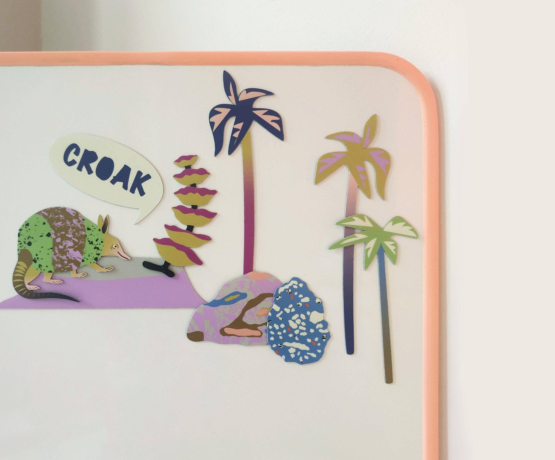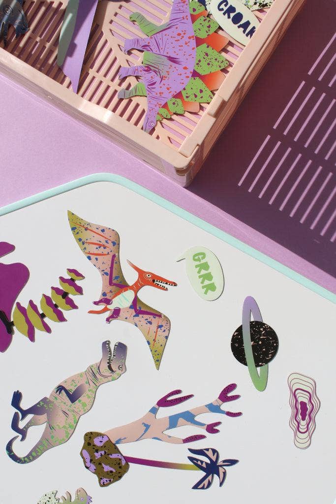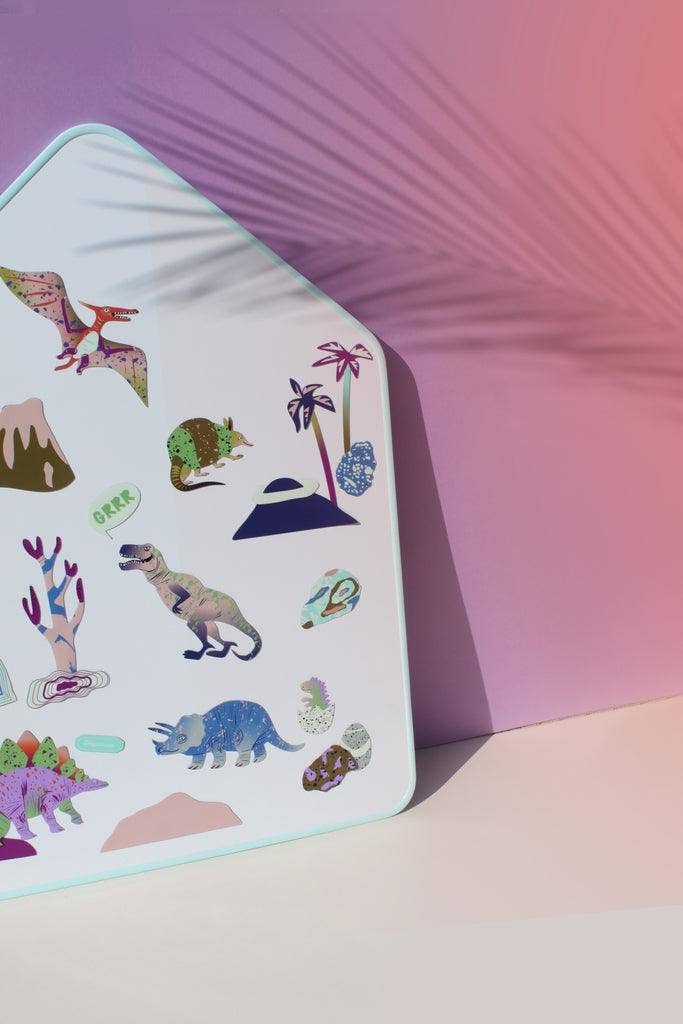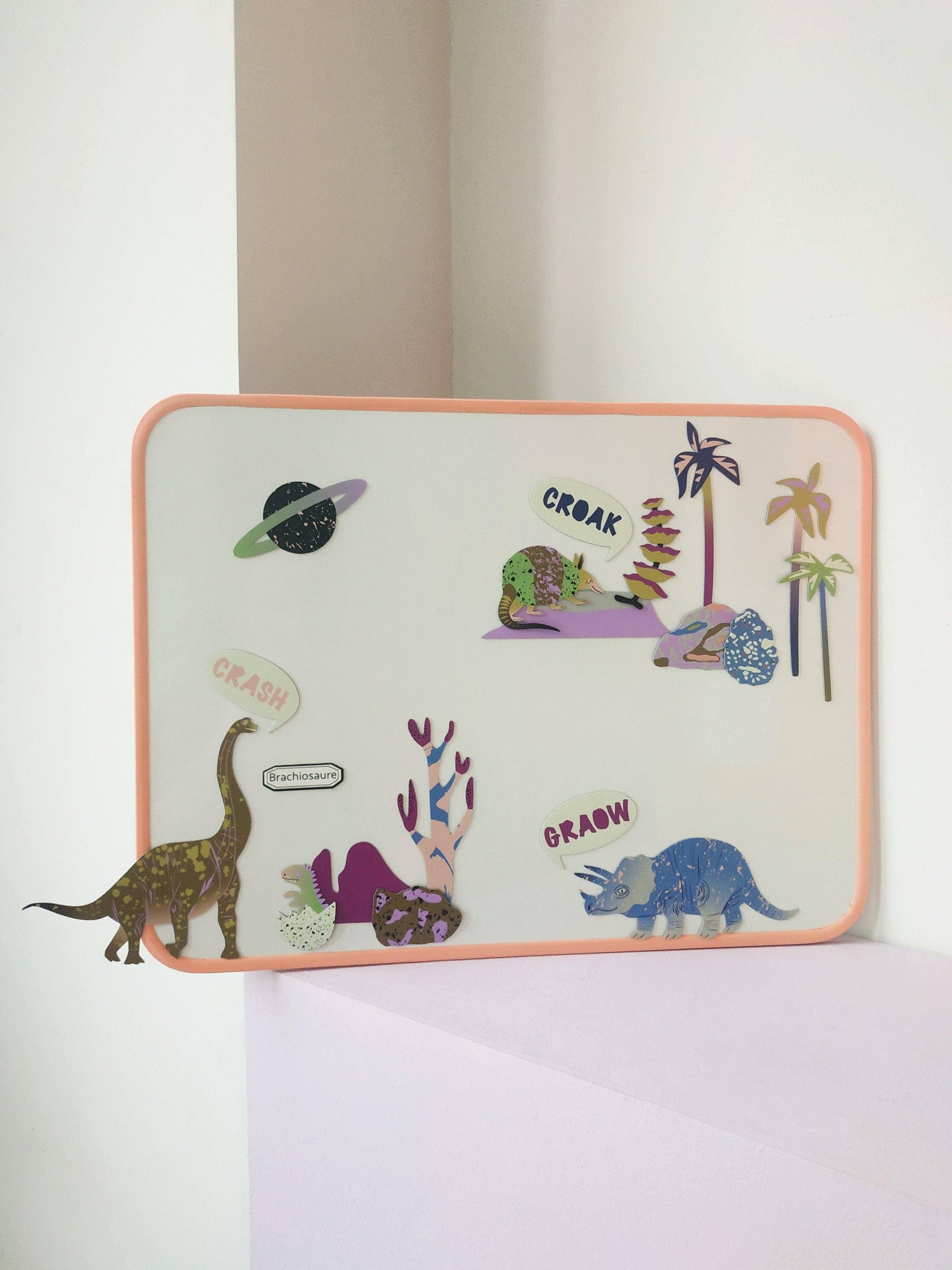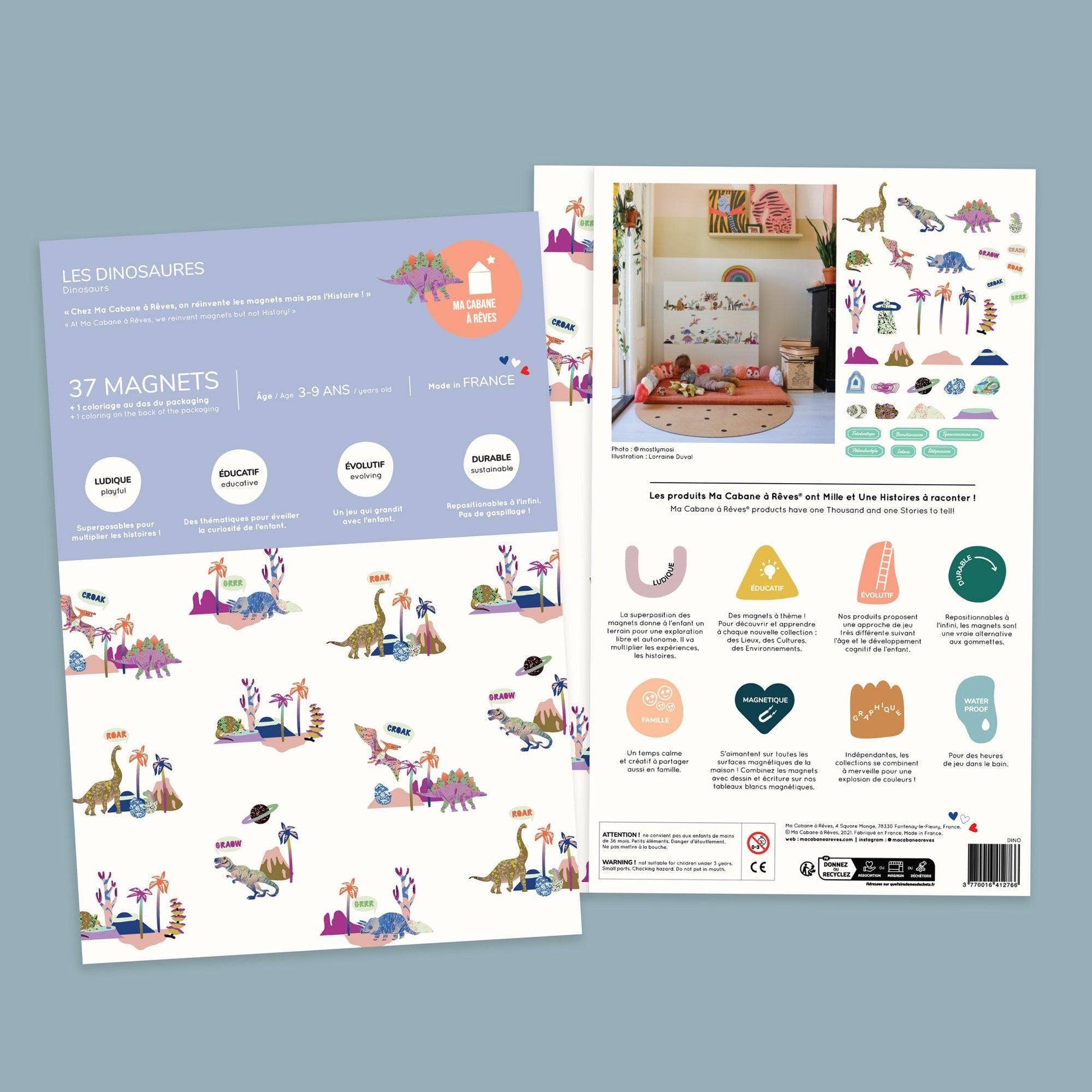 Magnetisches Dinosaurier-Spiel. Magnete neu erfunden, aber nicht die Geschichte!“ Description • 37 Weichmagnete (2 vorgeschnittene A4-Magnetfolien). Die Formen sind vorsichtig vom Träger zu lösen). • 1 Malvorlage auf der Rückseite der Verpackung Alter: 3 bis 9 Jahre Zusammensetzung: wasserdichtes, weichmagnetisches Material. Die Magnete können mit Wasser und Seife gereinigt werden. Die Überlagerung der Magnete bietet Kindern die Möglichkeit, ihr eigenes Spielerlebnis zu gestalten und sich eine Vielzahl von Geschichten vorzustellen. Erweitere deine Erlebnisse und Geschichten, indem du mit Magneten im Wasser spielst! Durch Benetzen der Magnete haften sie auf Glas-, Fliesen- und Kunststoffoberflächen (Harz) also auch in der Badewanne. Unsere Produkte erfüllen die Anforderungen der EG-Spielzeugsicherheitsnorm EN 71, aber auch der REACH-Verordnung. Mit Liebe in Frankreich hergestellt.