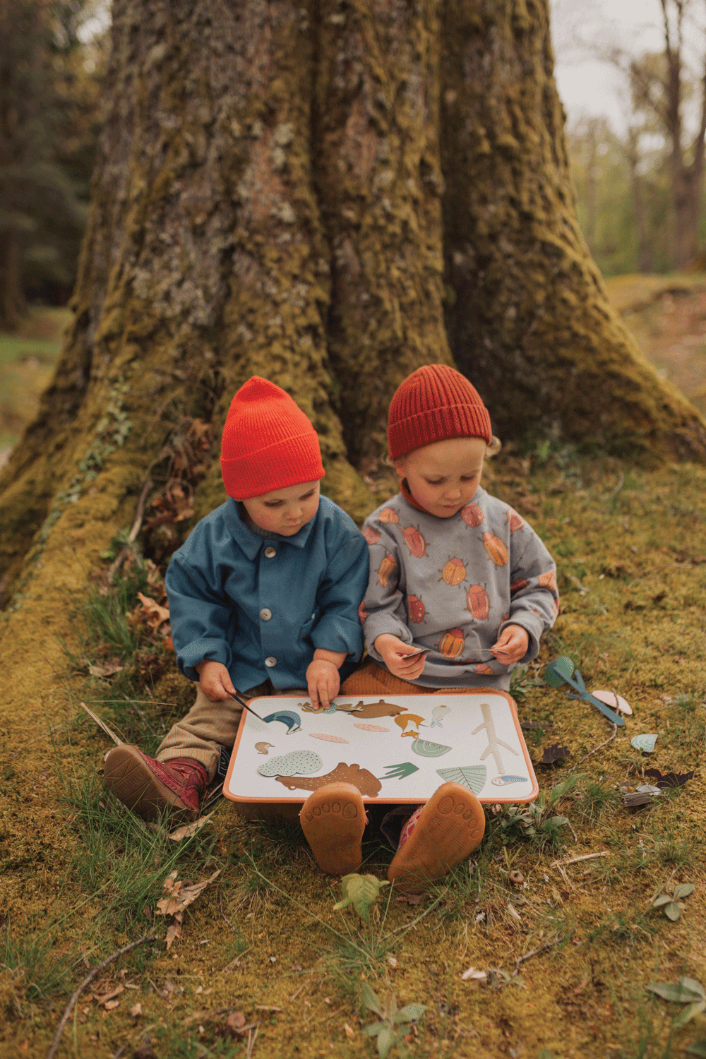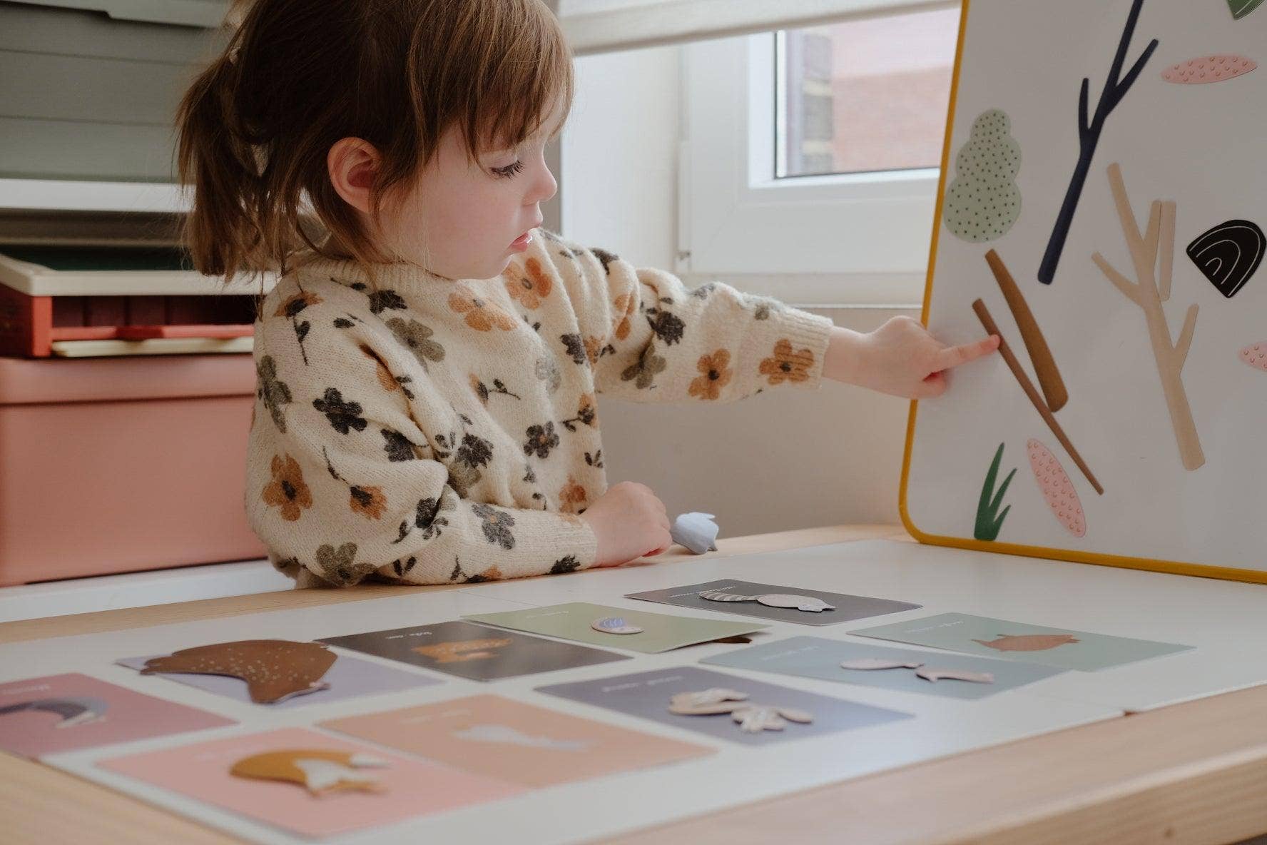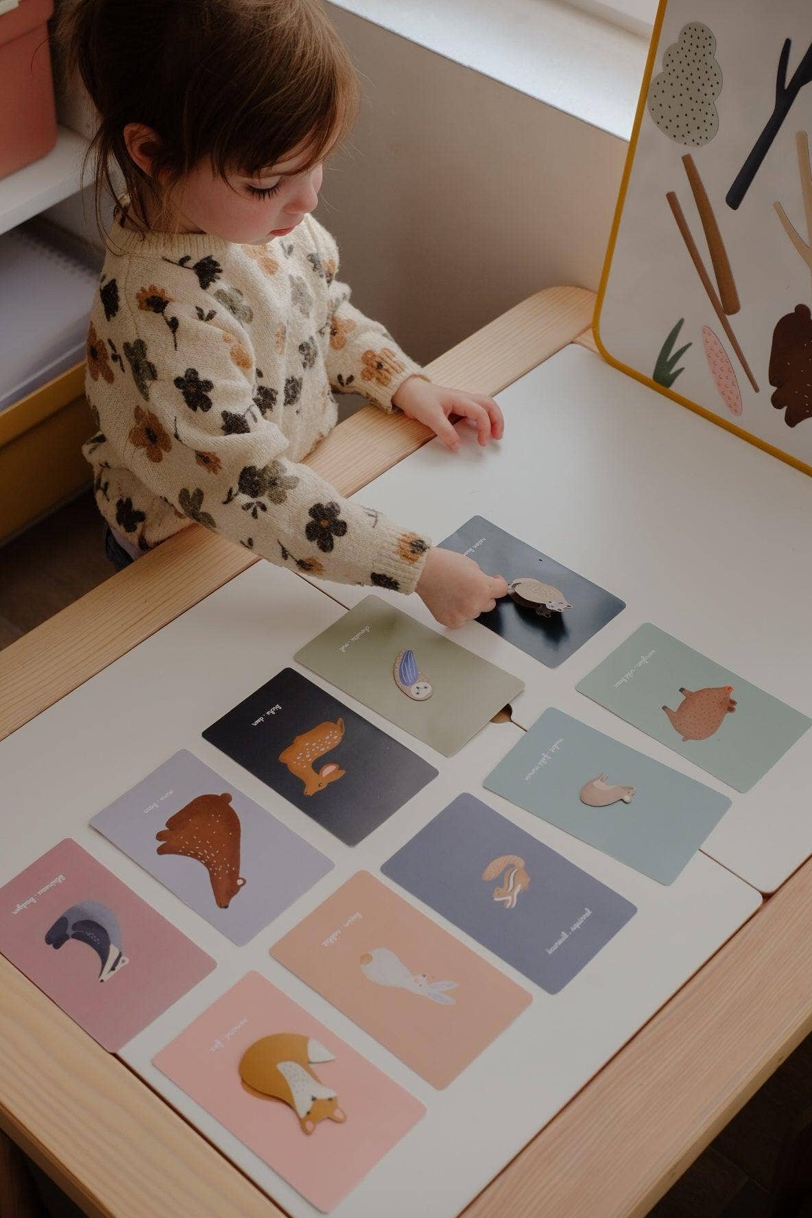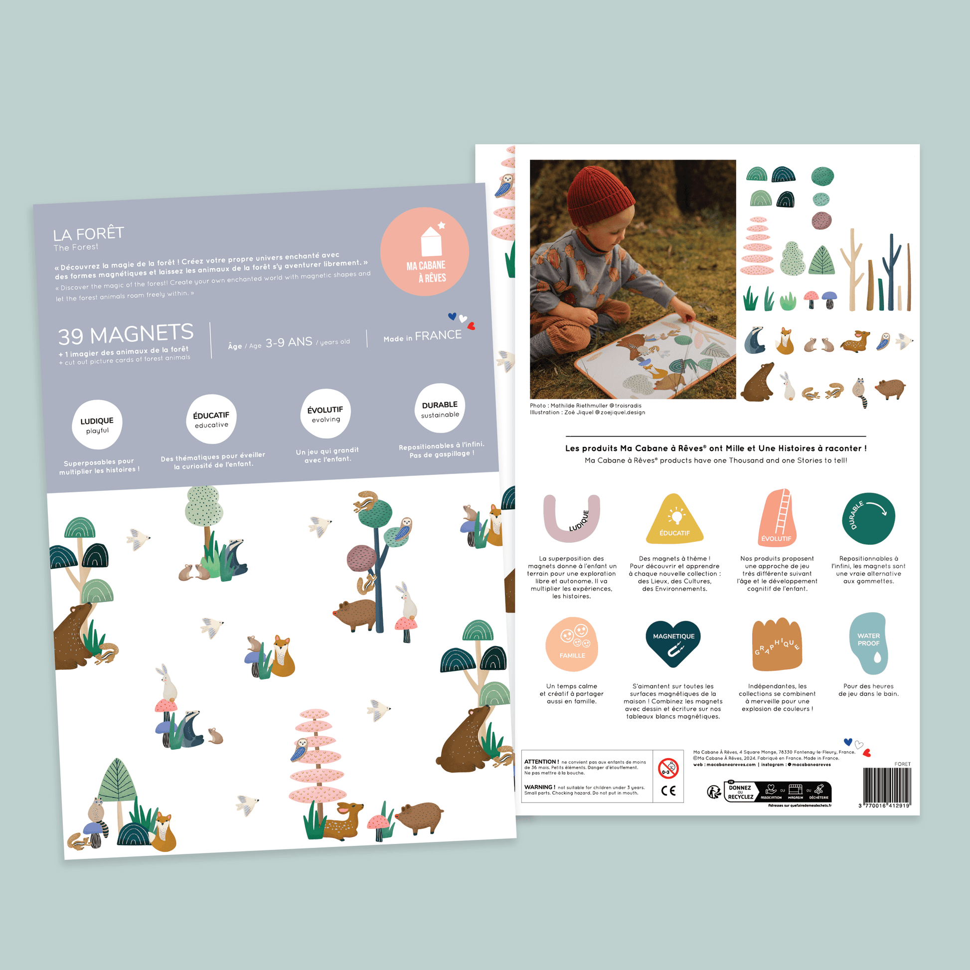 Mit diesem magnetischen Waldspiel begeben sich die Tiere auf ein Abenteuer! 🦊✨ Kreiere unglaubliche Geschichten! Ein Spiel, das ebenso poetisch wie spielerisch ist und die Fantasie anregt, während es den kleinen neugierigen Kindern die Natur näherbringt. 🌲🐿️ 39 Magnete (2 vorgestanzte A4-Magnetbögen, die Formen lassen sich vorsichtig vom Trägerpapier ablösen). + 1 zweisprachiges Bilderbuch (Französisch/Englisch) über Waldtiere zum Ausschneiden. Für Kinder von 3 bis 9 Jahren Dieses spielerische Erlebnis weckt die Neugier der Kinder und führt sie gleichzeitig in die Biodiversität ihrer Umgebung ein. Illustrationen von Zoé Jiquel, Fotos von troisradis und Evid